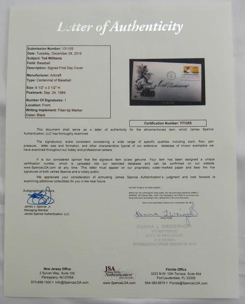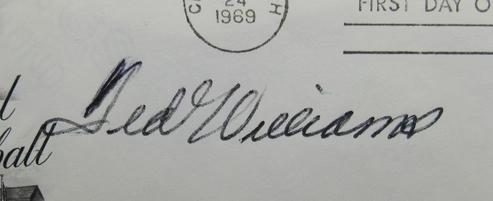 Envelope has been hand-signed on the front by Ted Williams (D. 2002, Boston Red Sox, HOF).