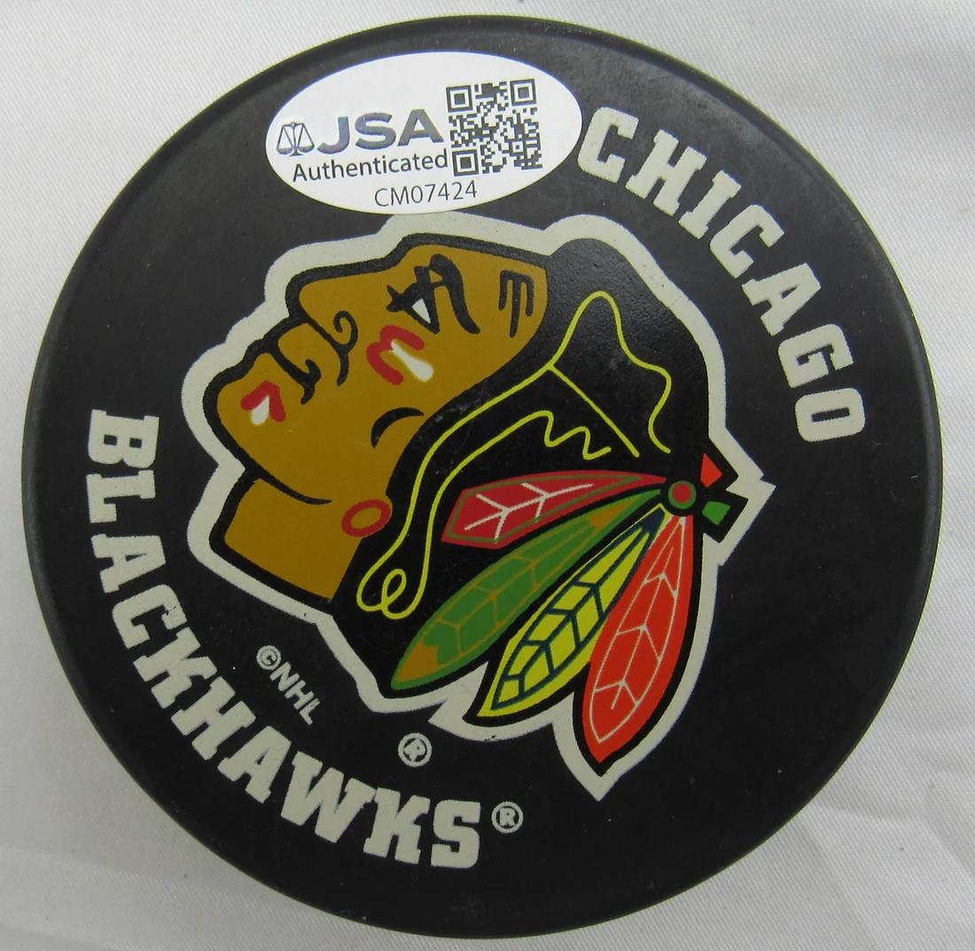 Bobby Hull Signed Blackhawks Logo Hockey Puck Inscribed "HOF 83" (JSA)