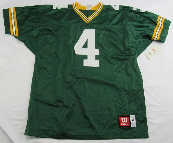 Wilson jersey with everything sewn on, size XL. Hand-signed by Brett Favre (Green Bay Packers, HOF).