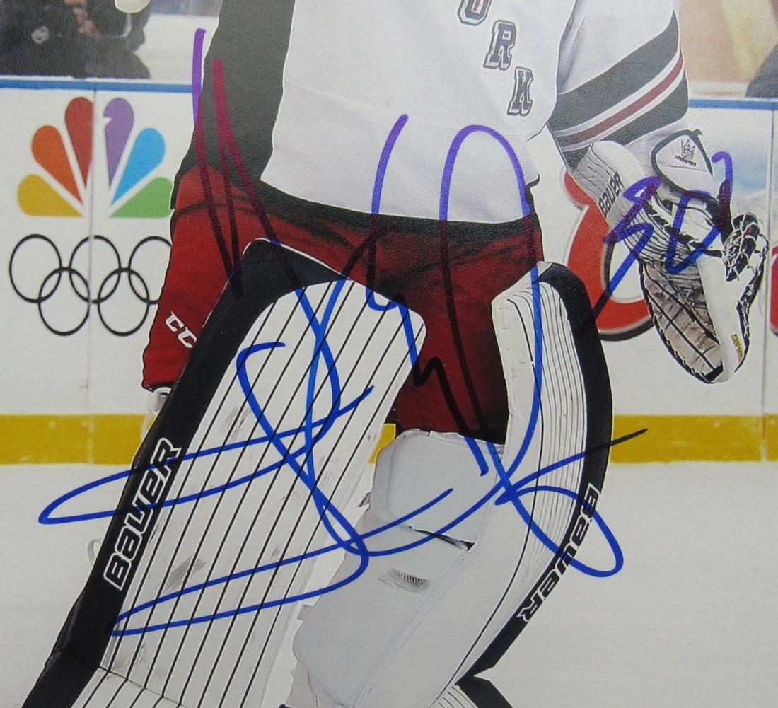 Photo measures 8” x 10” in size and has been hand-signed by Henrik Lundqvist (New York Rangers, HOF).