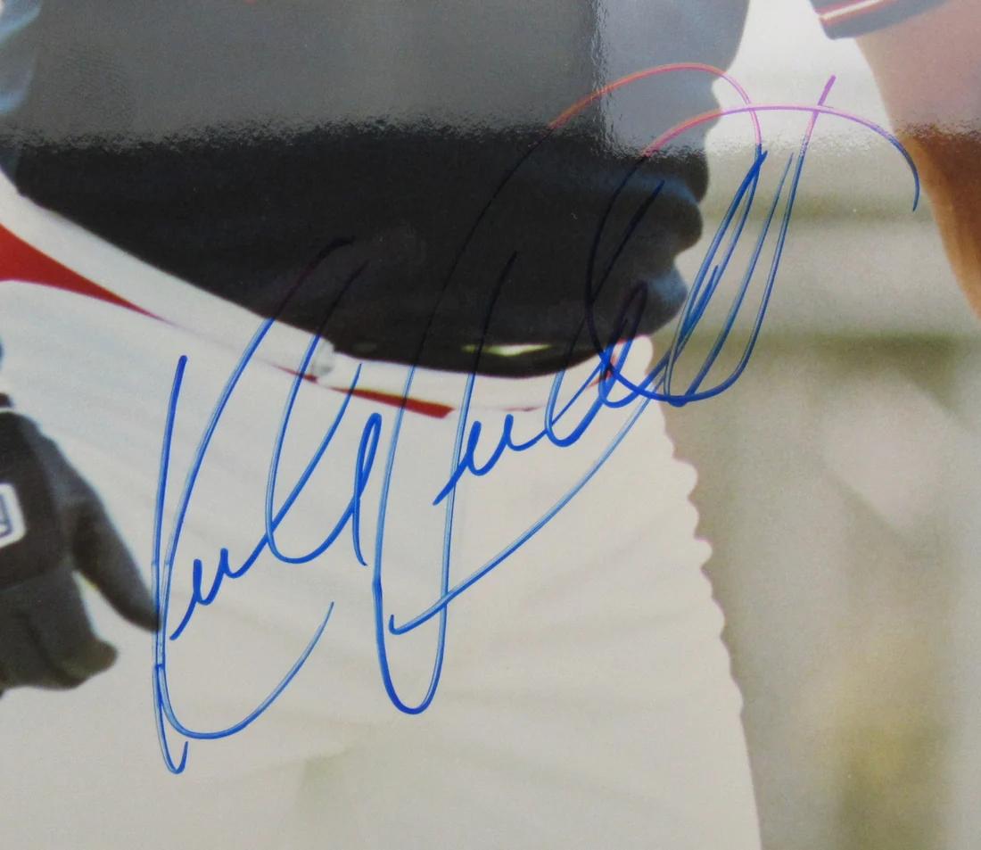Photo measures 8” x 10” in size and has been hand-signed by Kirby Puckett (D. 2006, Minnesota Twins, HOF).