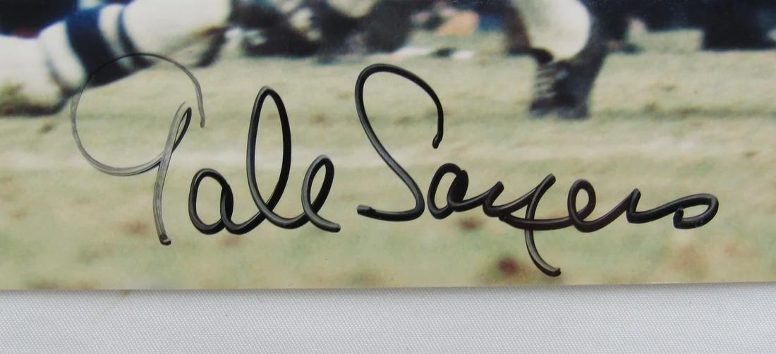 Photo measures 8” x 10” in size and has been hand-signed by Gale Sayers (D. 2020, Chicago Bears).