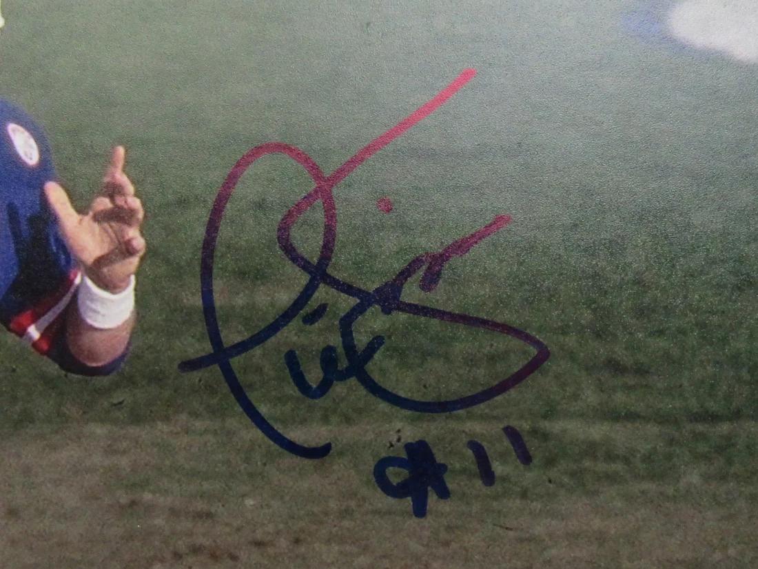 Photo measures 11” x 14” in size and has been hand-signed by Phil Simms (New York Giants).