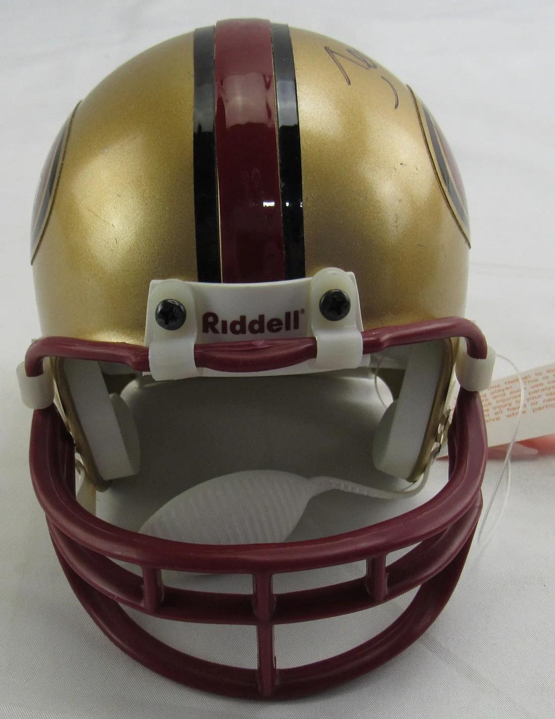 Riddell San Francisco 49ers mini helmet has been hand-signed by Jerry Rice (HOF).