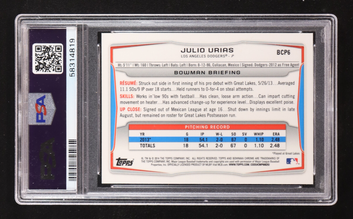 Julio Urias 2014 Bowman Chrome Prospects #BCP6 (PSA 10)
