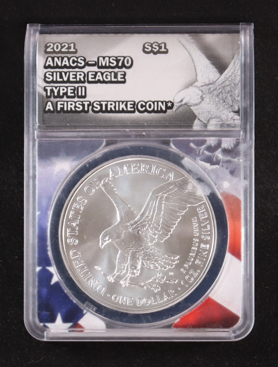 2021 American Silver $1 Dollar Eagle, Type 2 - First Strike (ANACS MS70)