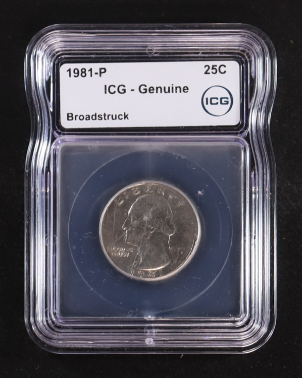 1981-P Washington 25C Quarter - Mint Error, Broadstruck (ICG Genuine)