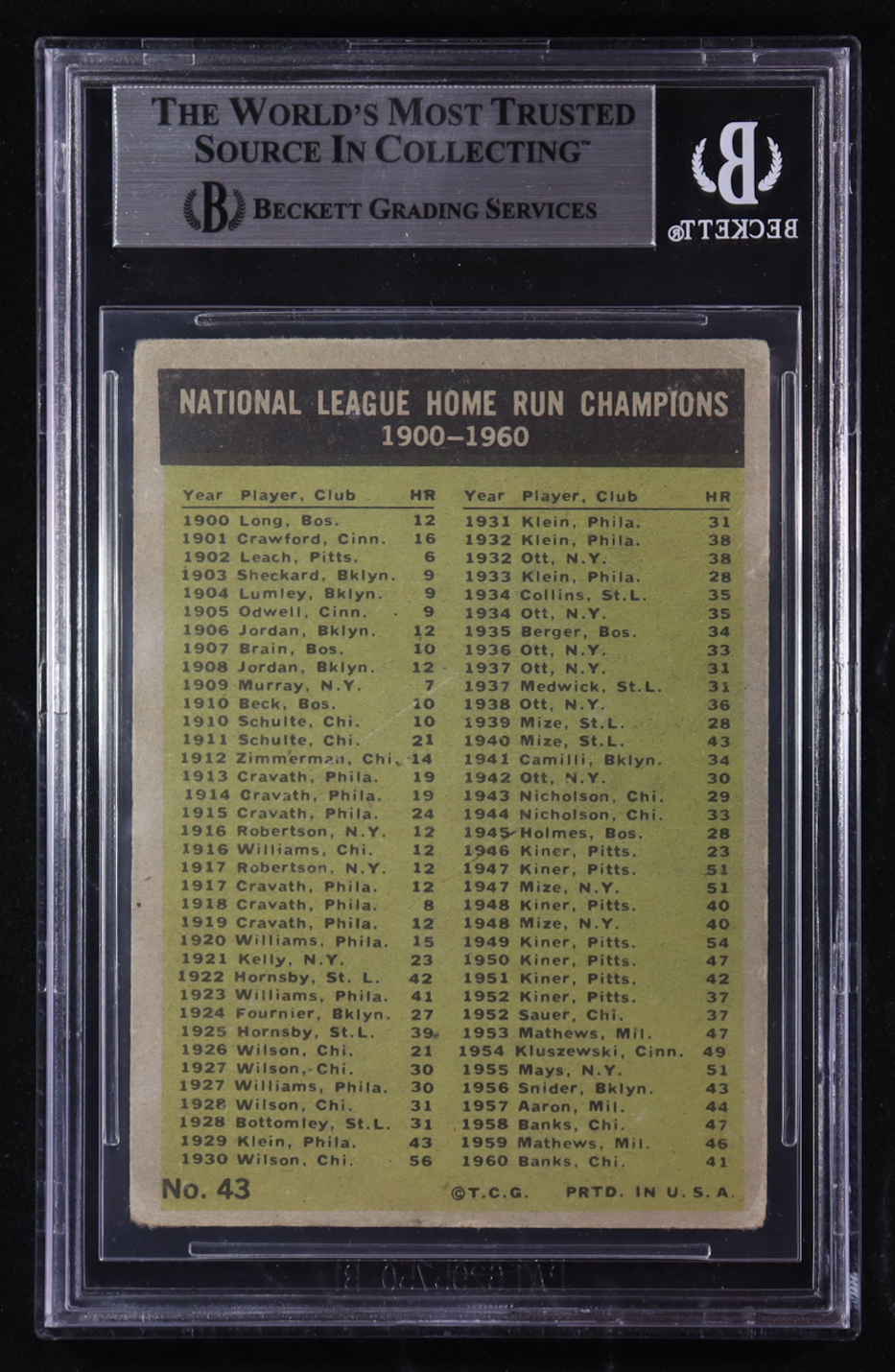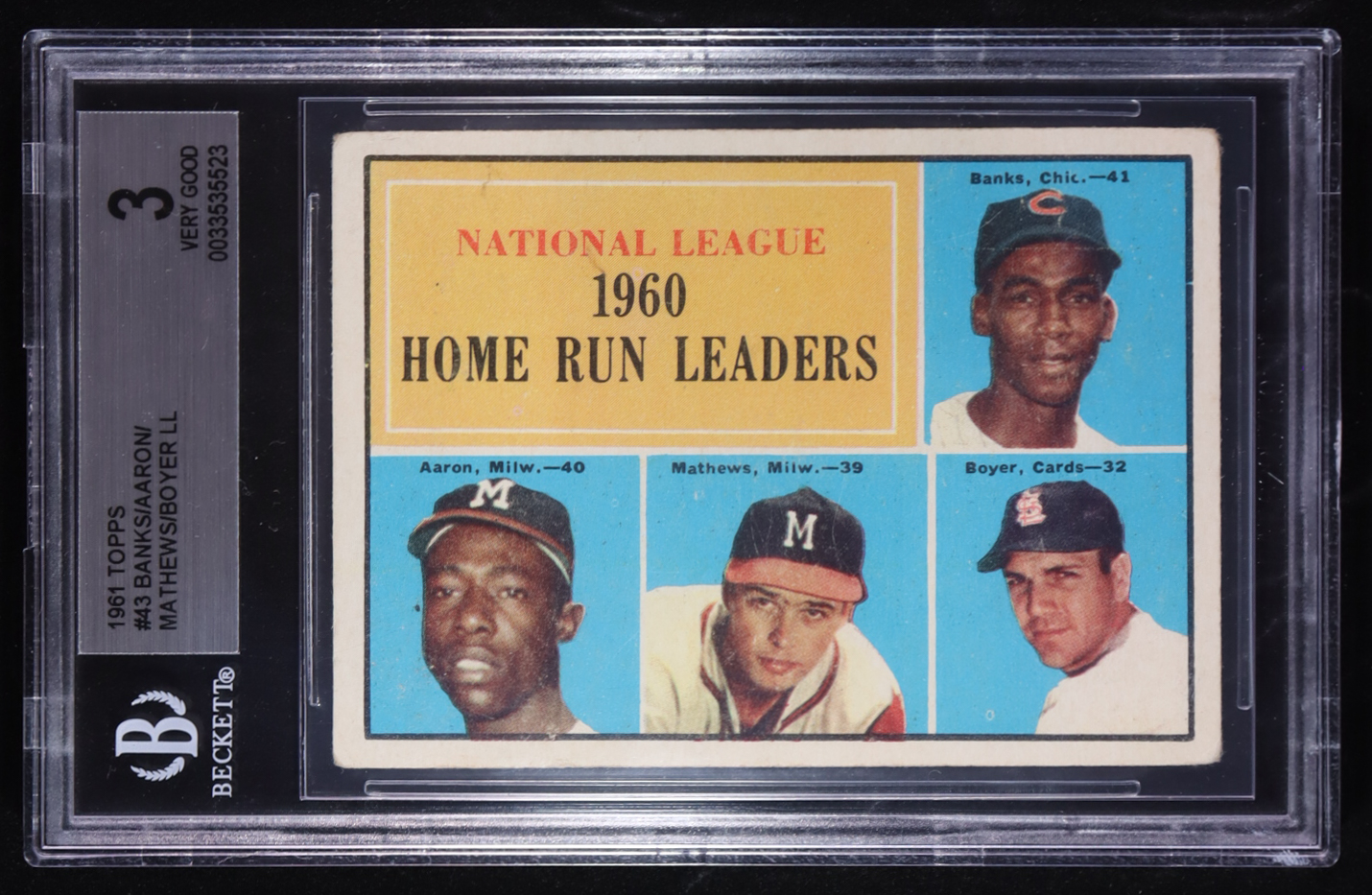 Ernie Banks / Hank Aaron / Ed Mathews / Ken Boyer 1961 Topps NL Home Run Leaders #43 (BGS 3)