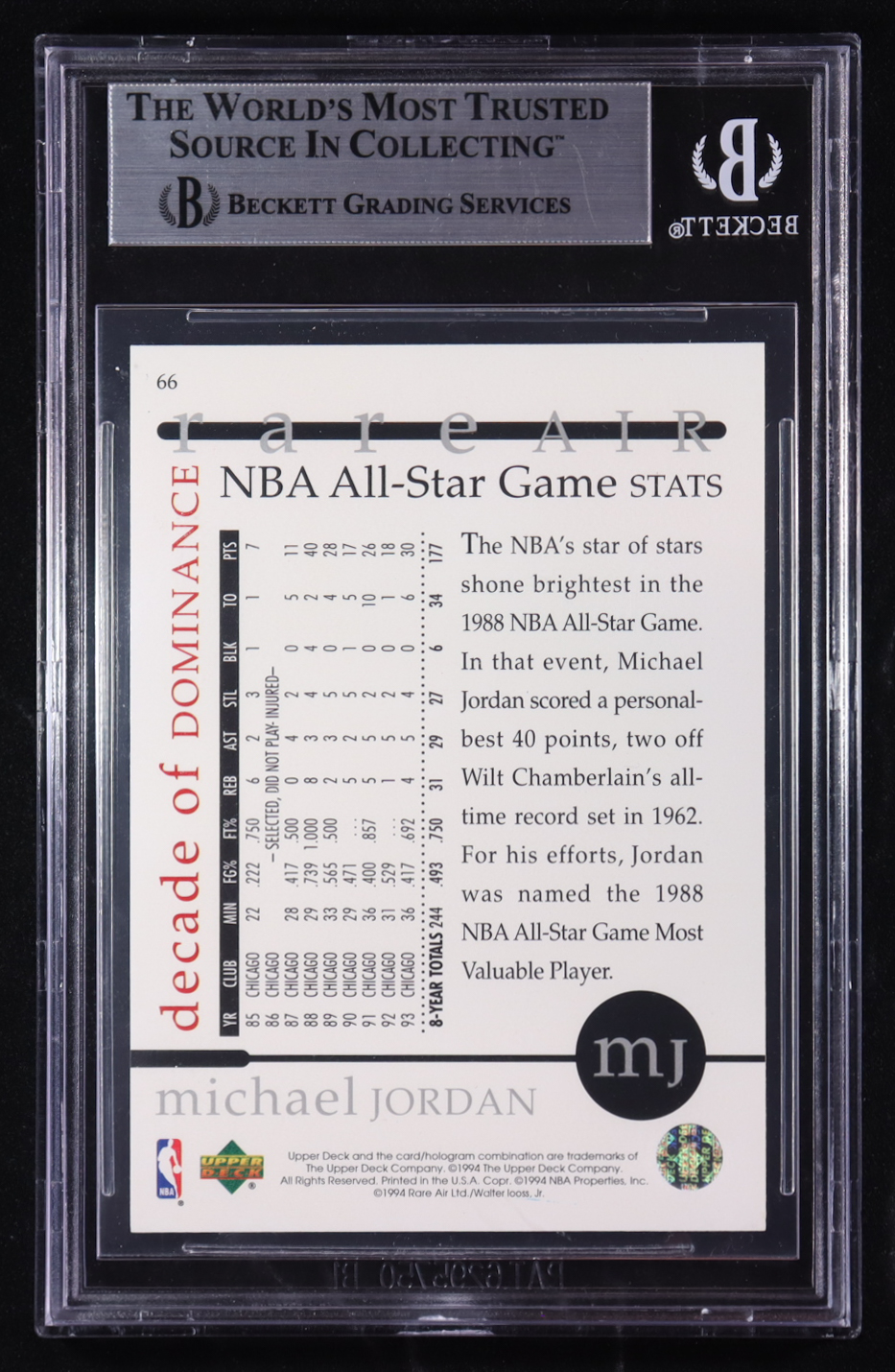 Michael Jordan 1994 Upper Deck Rare Air Decade of Dominance #66 (BGS 9)