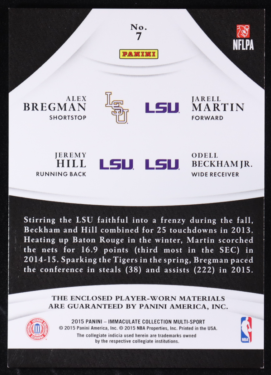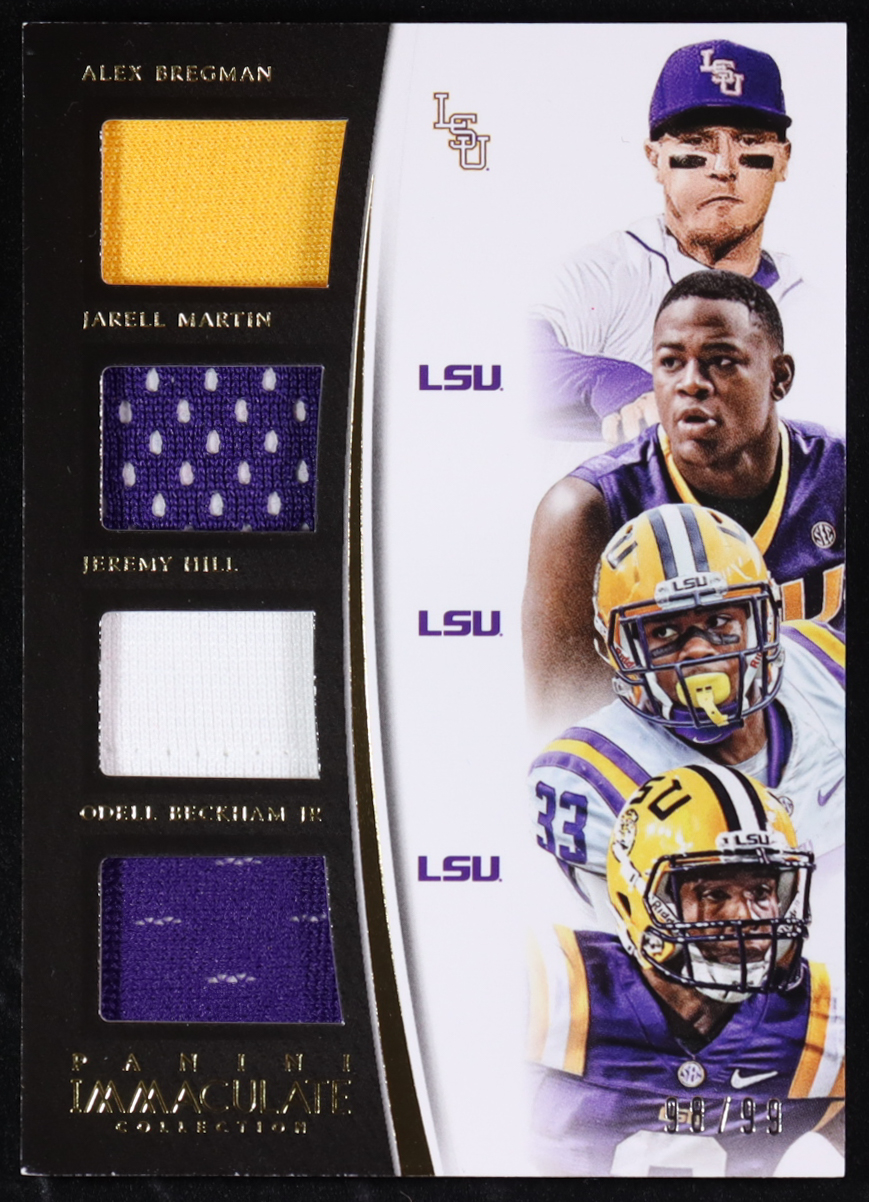 Jeremy Hill / Alex Bregman / Jarell Martin / Odell Beckham Jr. 2015 Immaculate Collection Collegiate Multisport Material Quads #7 #98/99 RC