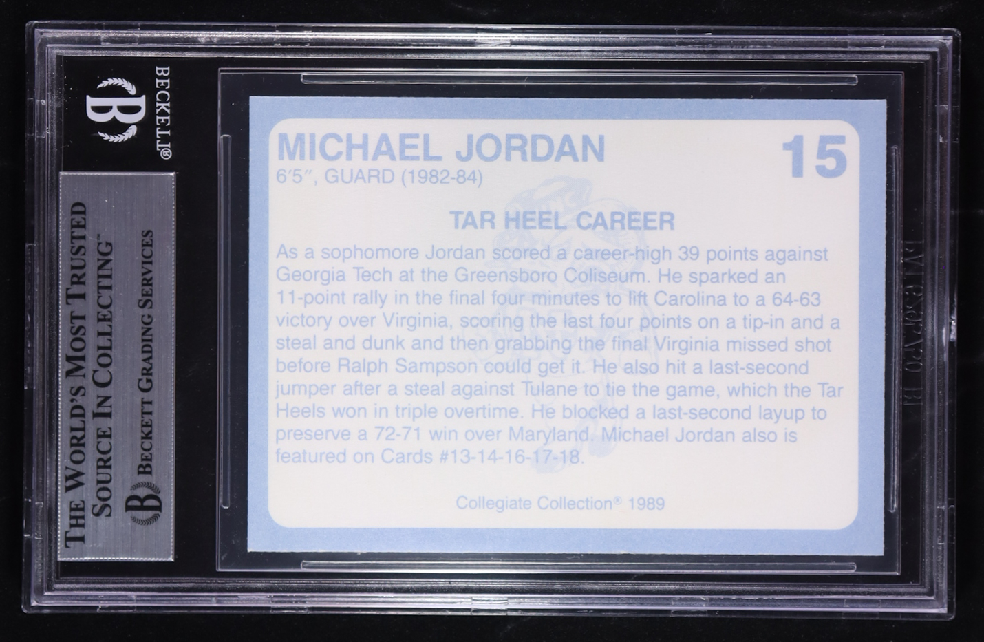 Michael Jordan 1989-90 North Carolina Finest Collegiate Collection #15 (BGS 8.5)