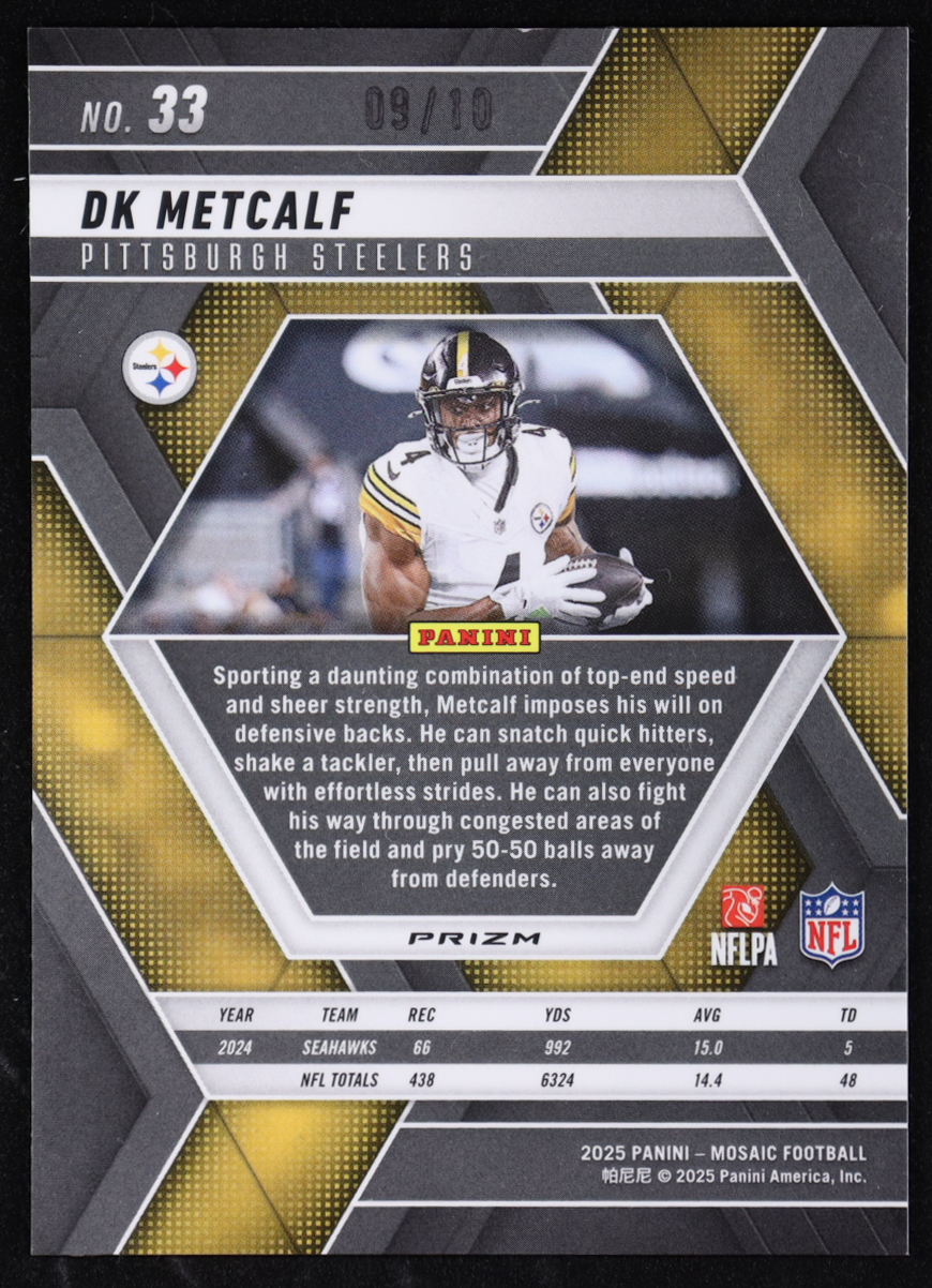 D.K. Metcalf 2025 Panini Mosaic Mosaic Green Fluorescent #33 #09/10