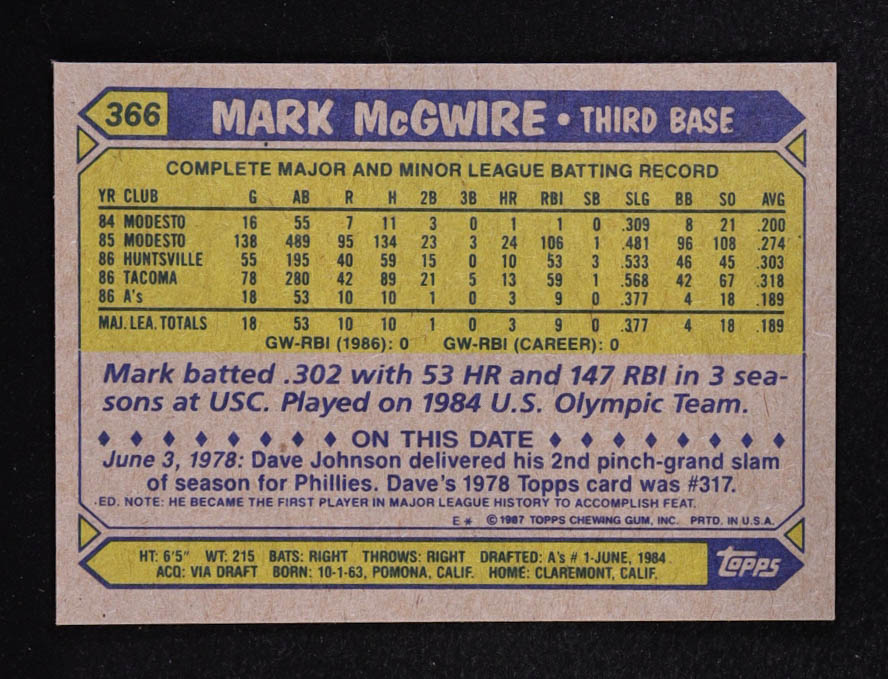 Mark McGwire 1987 Topps #366 RC