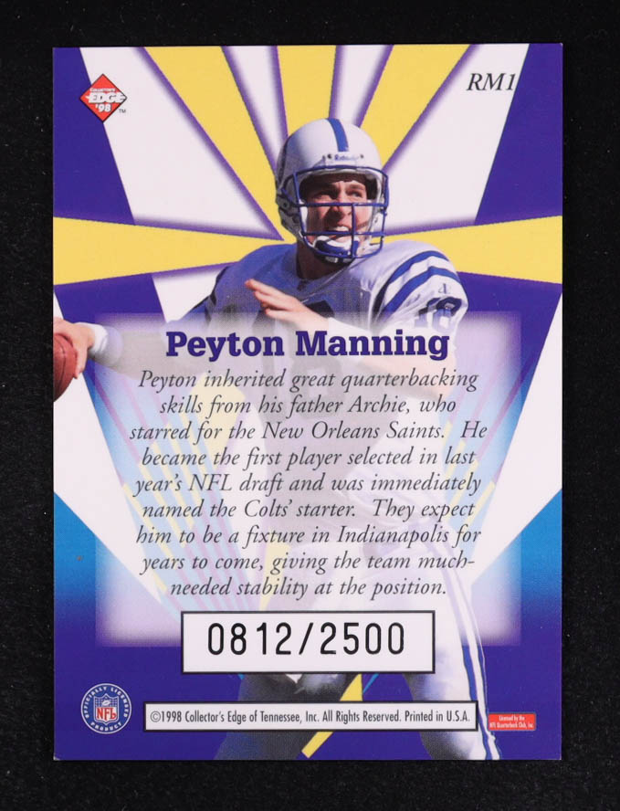 Peyton Manning 1998 Collector's Edge Masters Rookie Masters #RM1 #0812/2500 RC