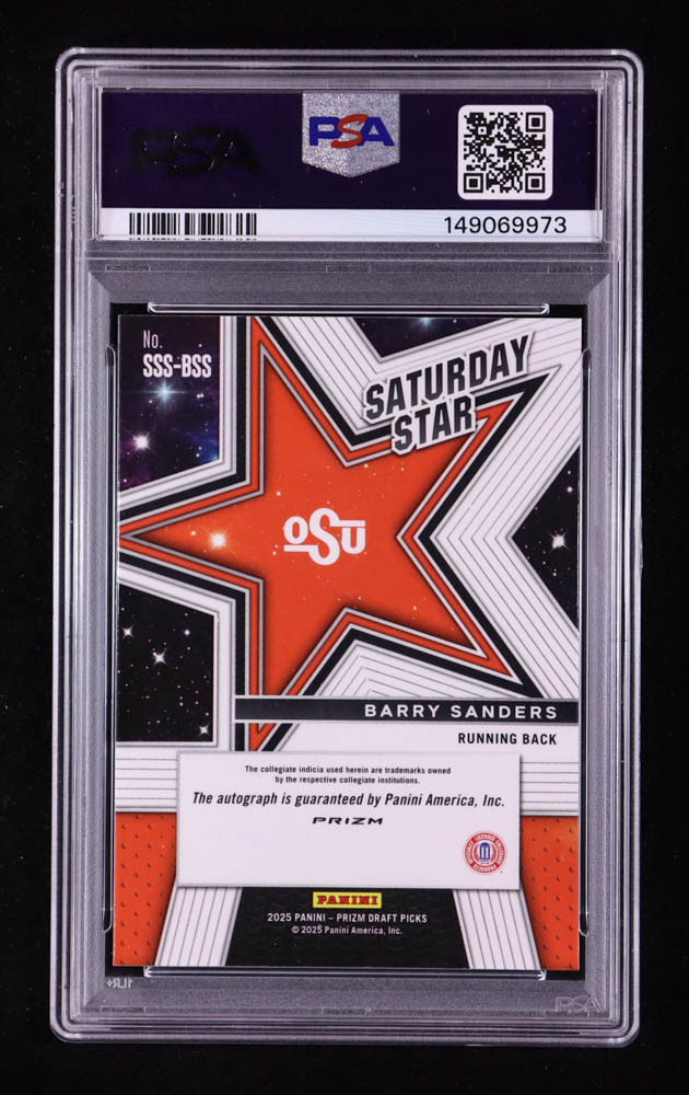 Barry Sanders 2025 Panini Prizm Draft Picks Saturday Star Signatures Gold Ice #3 (PSA 10)