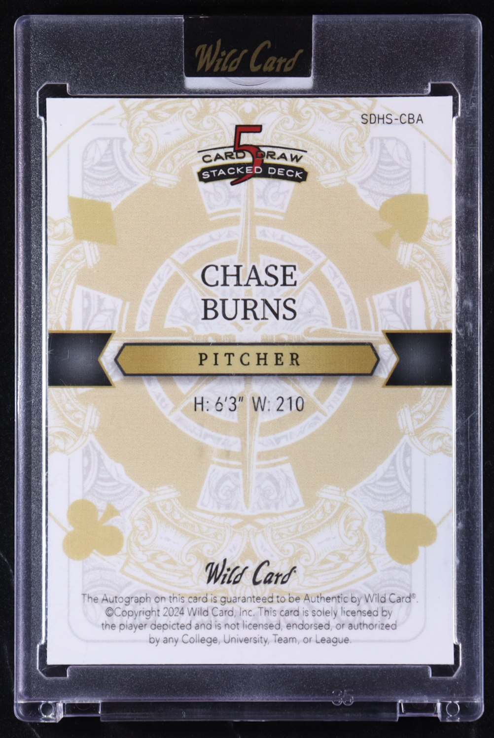 Chase Burns 2024 Wild Card 5 Card Stacked Deck King of Spades Auto #SDHS-CBA RC #1/1