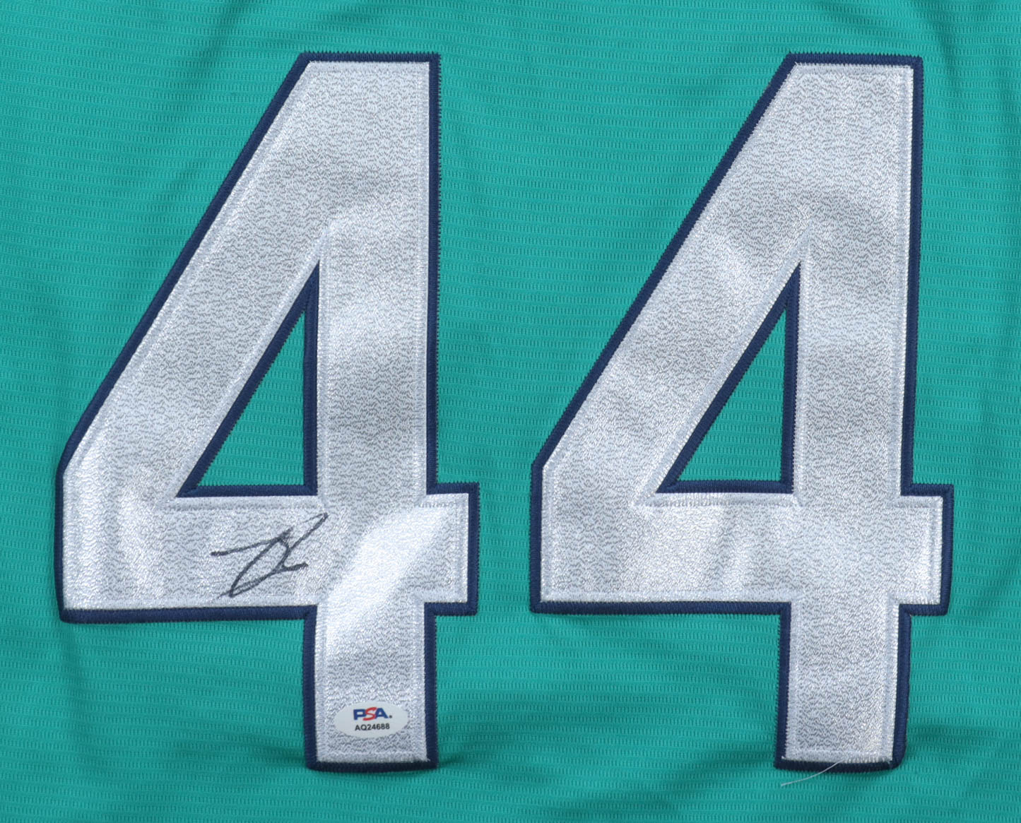 Custom jersey with everything sewn on, size XL. Hand-signed by Julio Rodriguez.