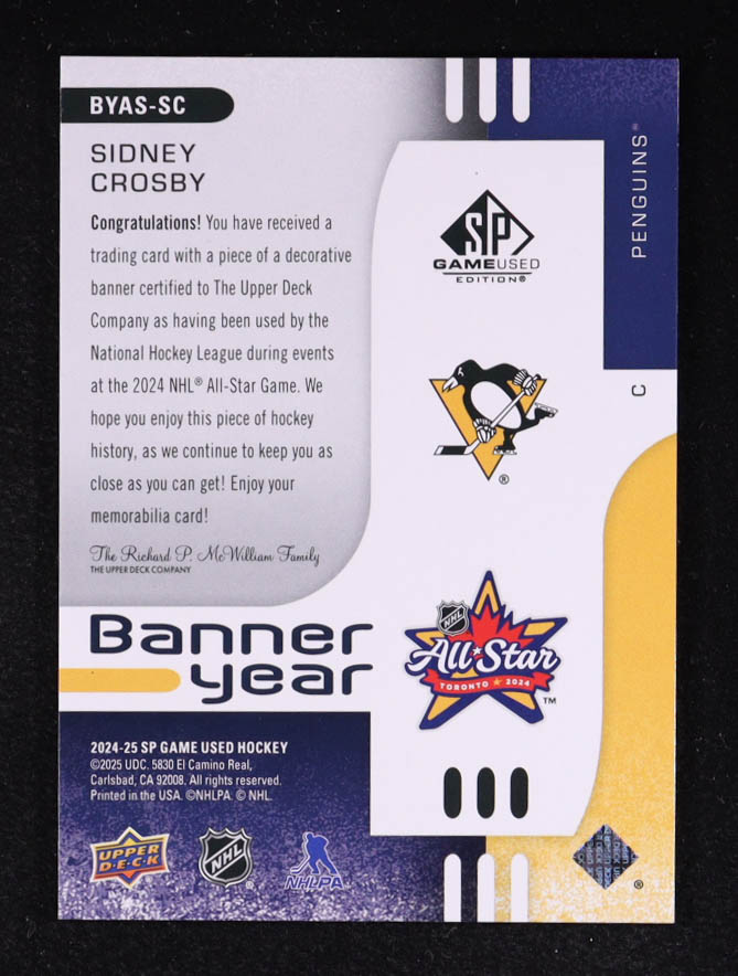 Sidney Crosby 2024-25 SP Game Used '24 All-Star Game Banner Year Relics #BYASSC