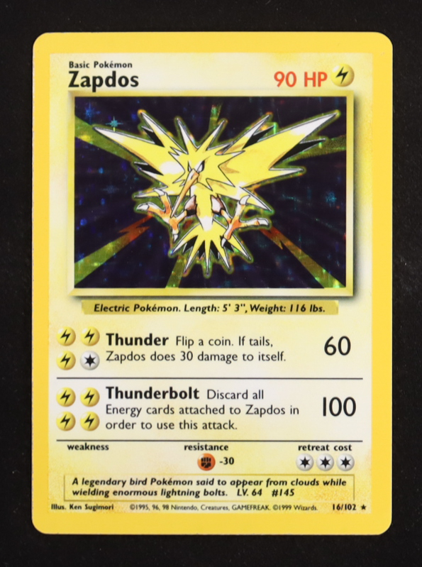 Zapdos 1999 Pokemon Base Unlimited #16 Holo