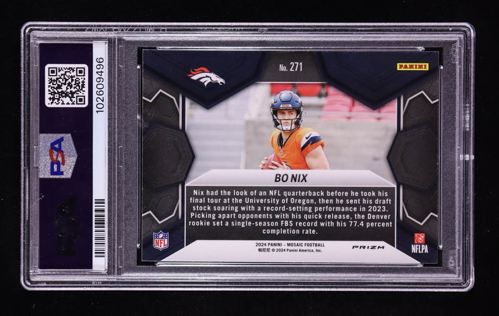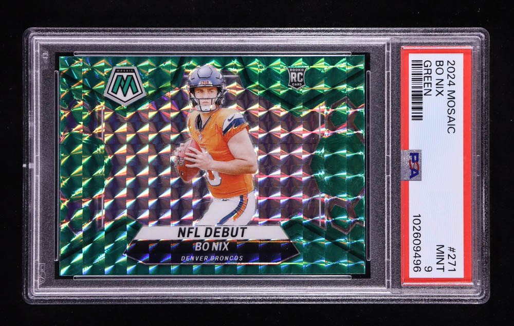 Bo Nix 2024 Panini Mosaic Mosaic Green #271 DEB RC (PSA 9)