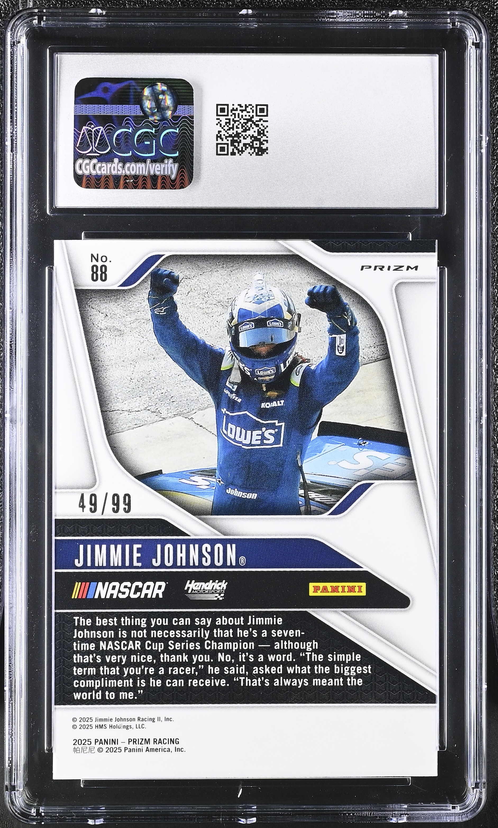 Jimmie Johnson 2025 Panini Prizm Purple #88 #49/99 (CGC 10)