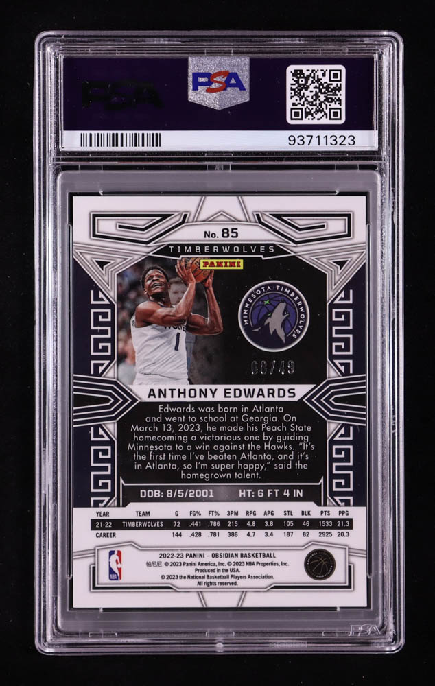 Anthony Edwards 2022-23 Panini Obsidian Electric Etch Purple Flood #85 #08/49 (PSA 9)