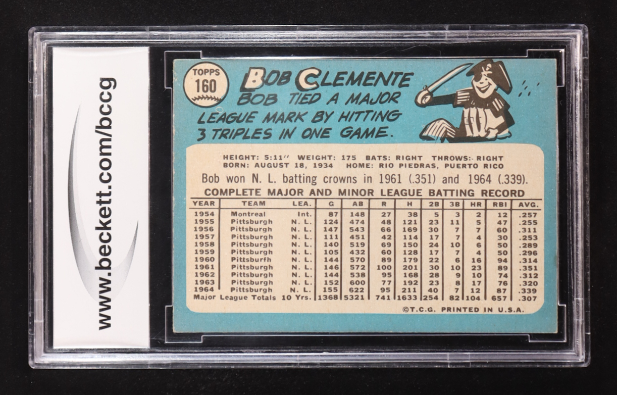 Roberto Clemente 1965 Topps #160 (BCCG 8)
