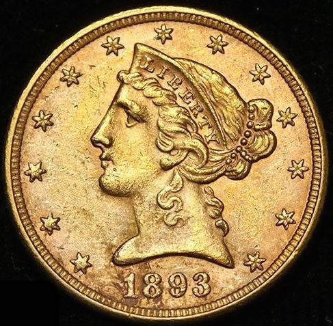 1893 $5 Five Dollars Liberty Head Half Eagle Gold Coin (High Grade Condition)
