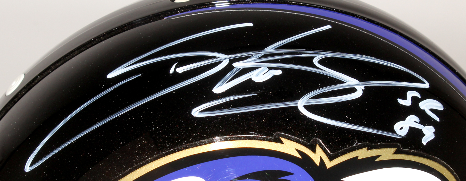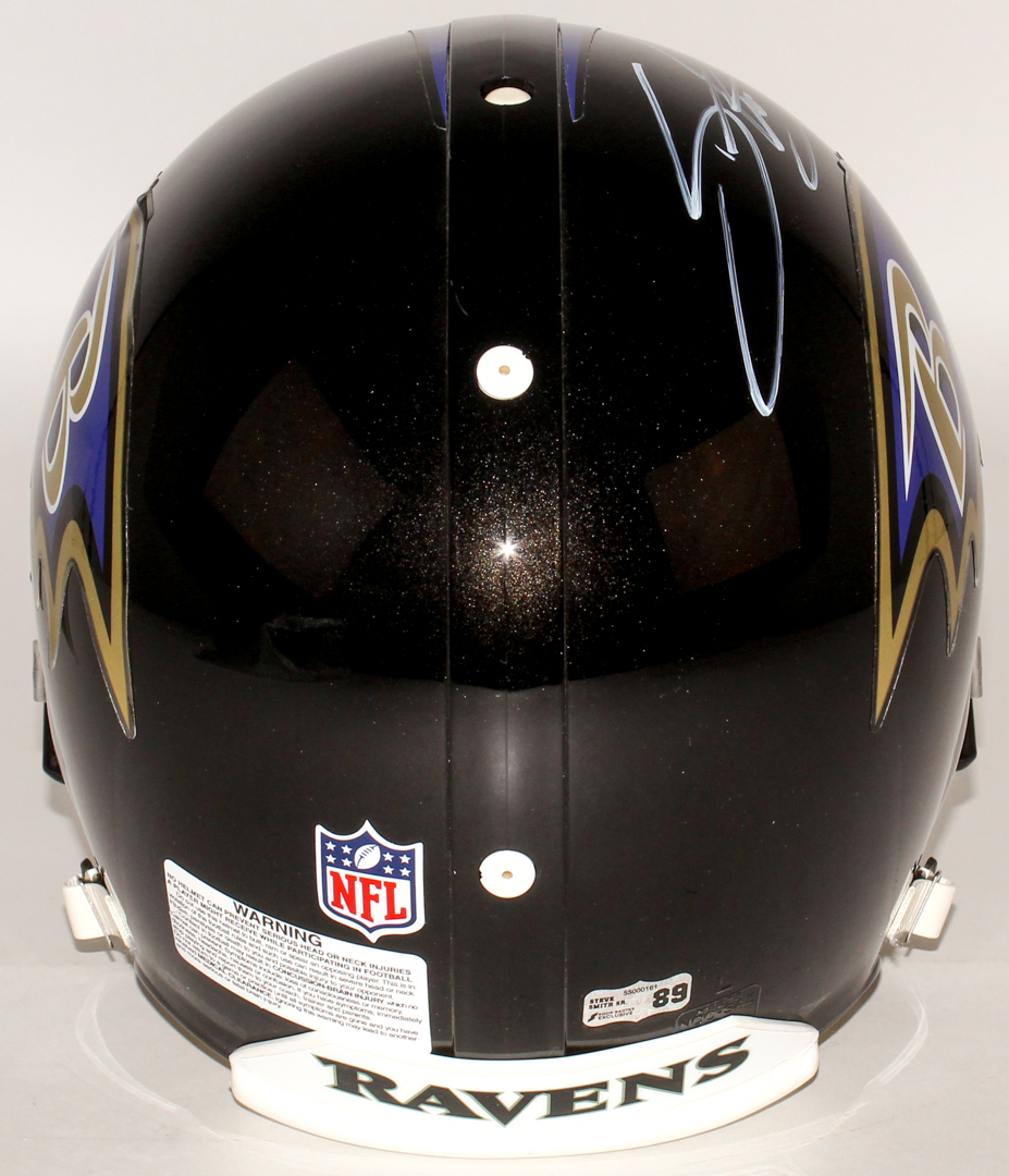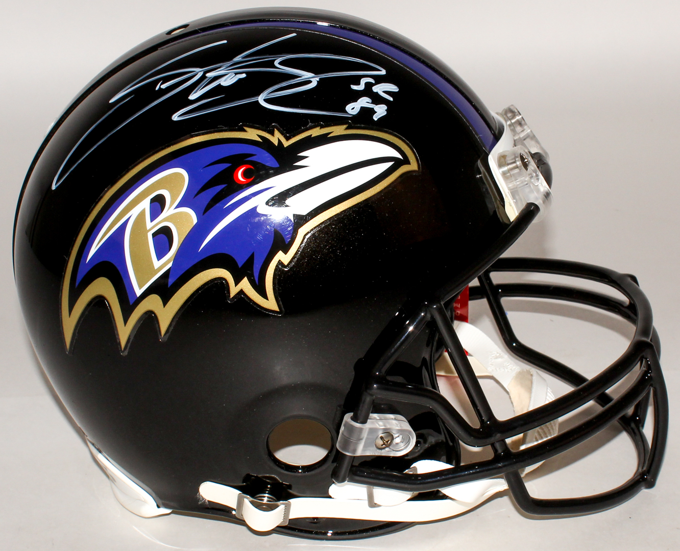 Riddell Baltimore Ravens full size authentic on-field helmet. Hand-signed in white paint pen by Steve Smith Sr.