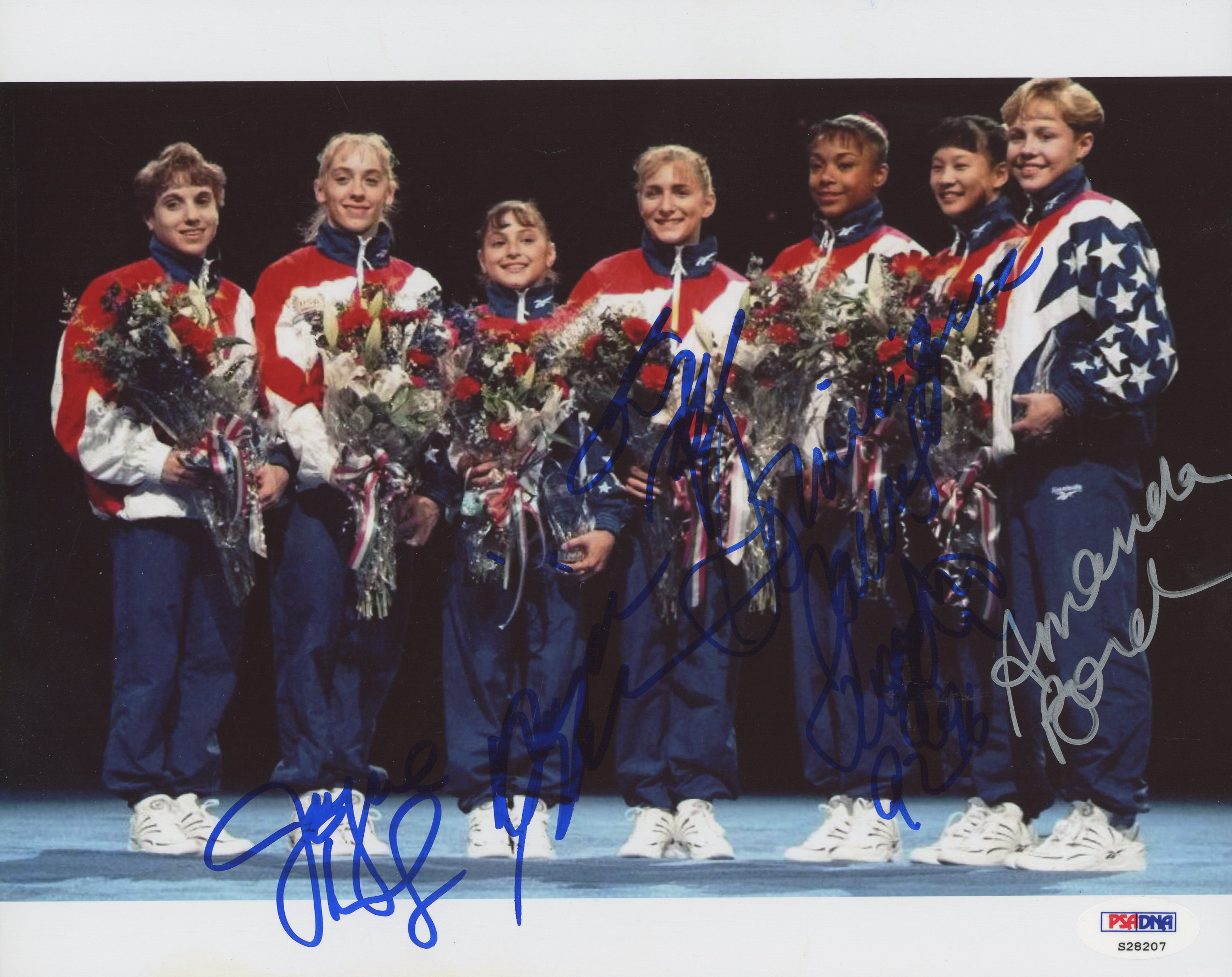 "Magnificent Seven" Team USA 8x10 Photo Signed by (6) with Jaycie Phelps, Dominique Dawes, Dominique Moceanu, Shannon Miller, Amy Chow & Amanda Borden (PSA COA)