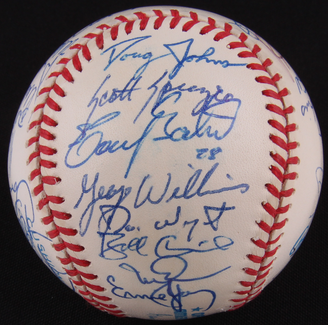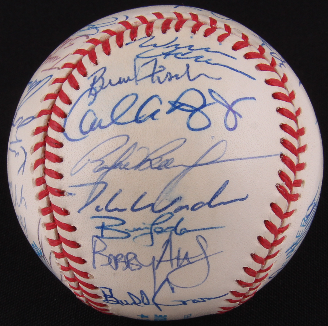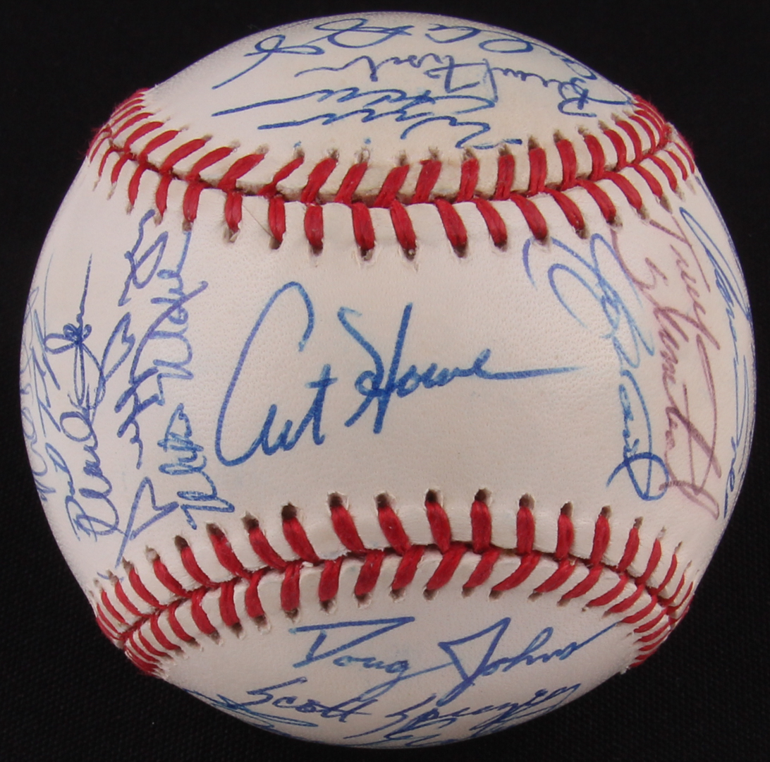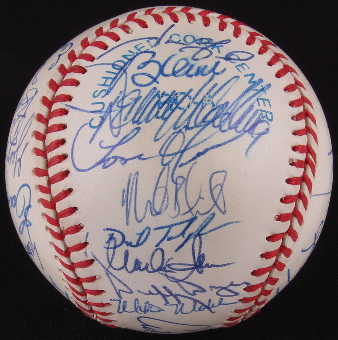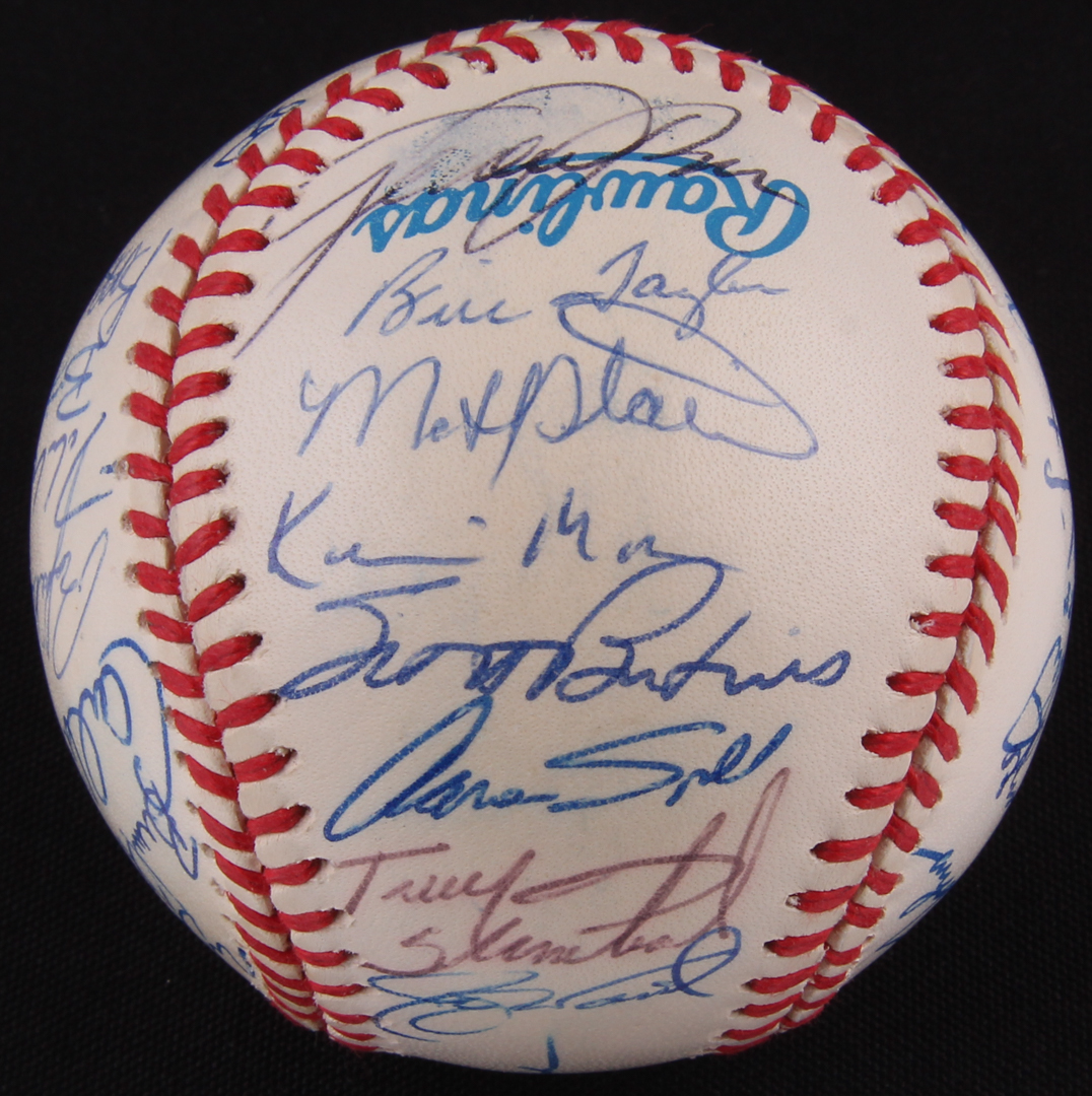 Official American League baseball. Hand-signed and inscribed in blue ink pen by (36) 1996 Oakland Athletic's players including: