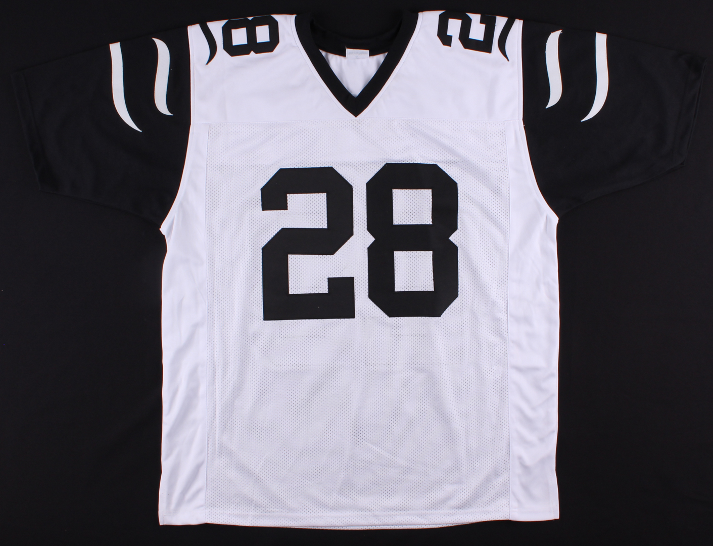 Custom on-field style Color Rush jersey. Everything sewn on, size XL. Hand-signed in white paint pen by Joe Mixon.