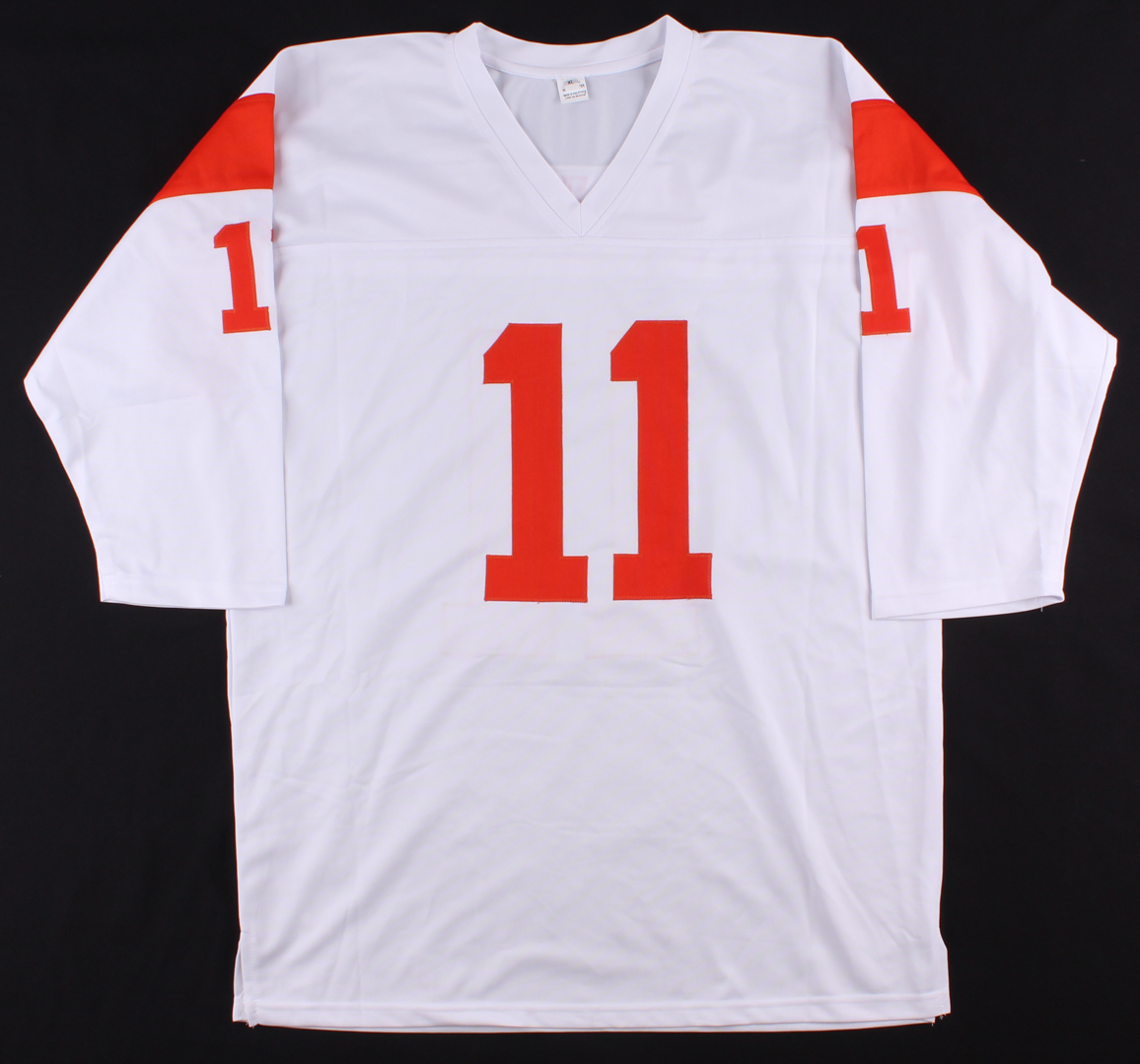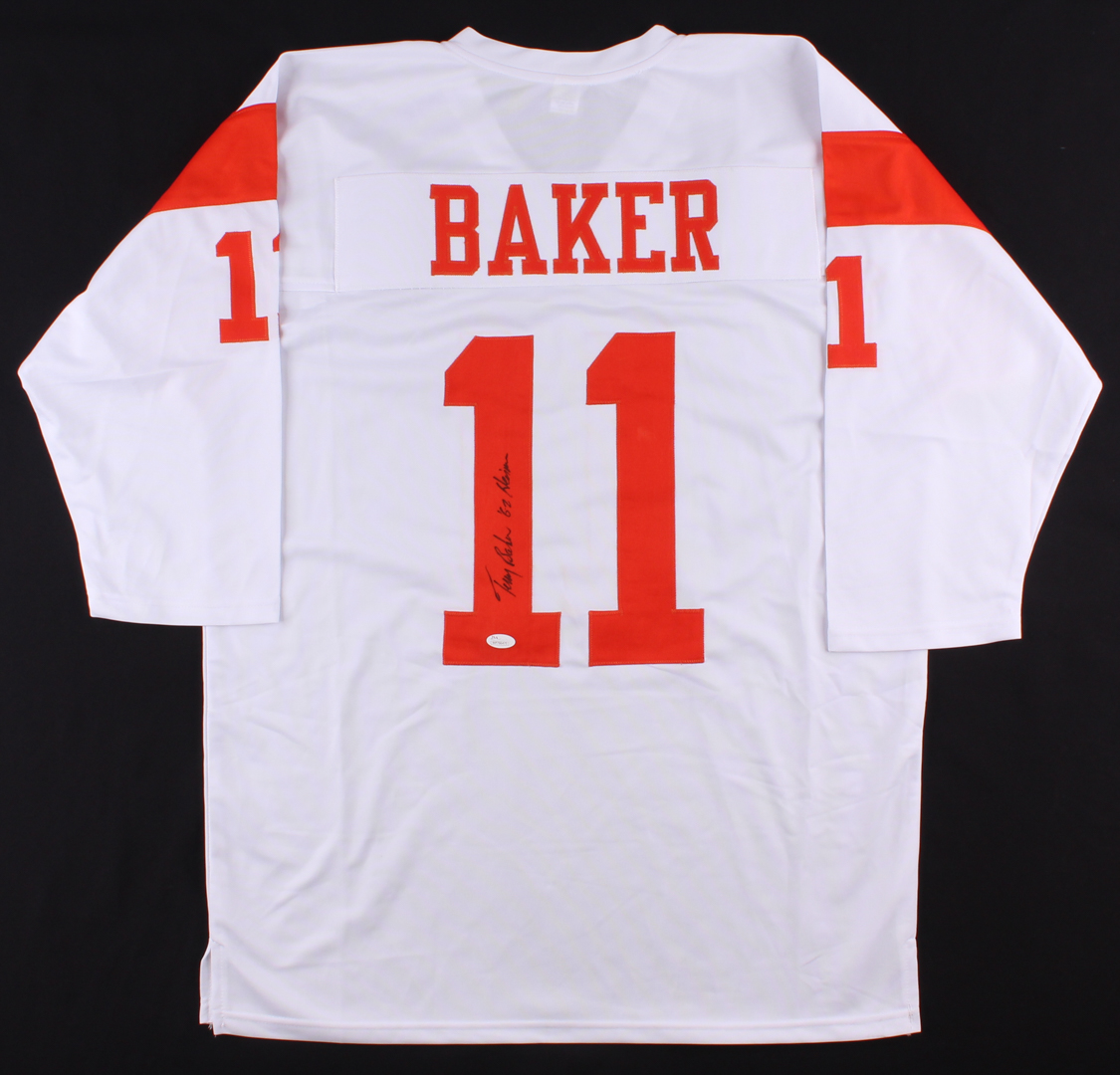Custom on-field style jersey. Everything sewn on, Size XL. Hand-signed in black felt-tip pen by Terry Baker.