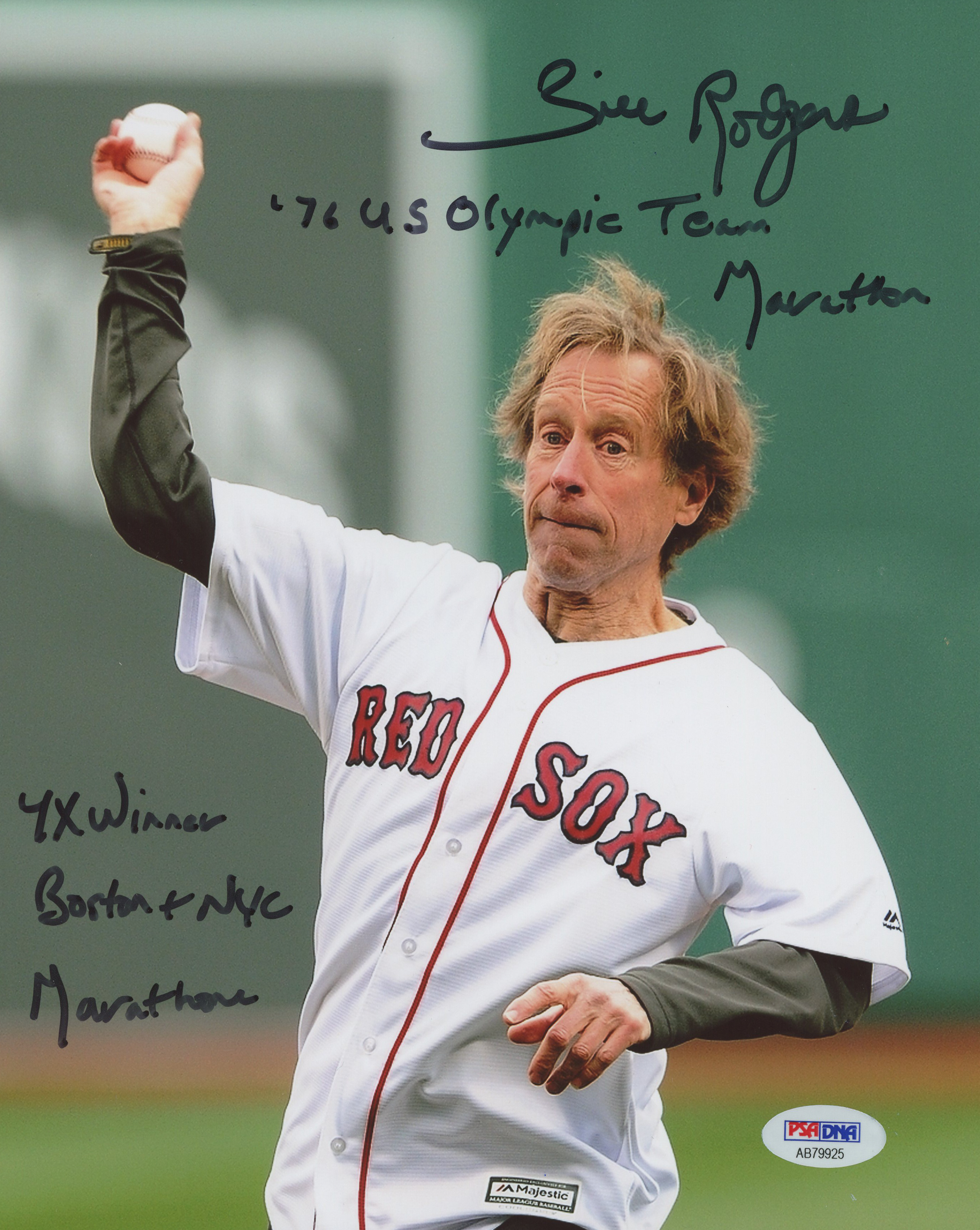 Bill Rodgers Signed Red Sox 8x10 Photo Inscribed "76 Olympic Team Marathon" & "4x Winner Boston+NYC Marathon" (PSA COA)