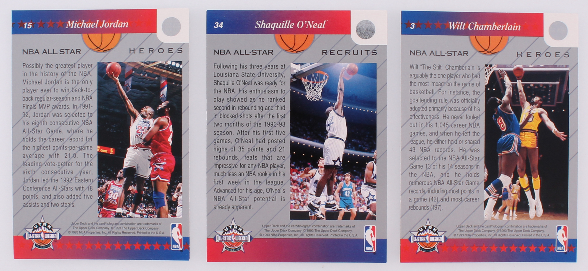 1993 Upper Deck NBA All-Star Complete Set of (40) Basketball Cards with #3 Wilt Chamberlain, #15 Michael Jordan, #34 Shaquille O'Neal