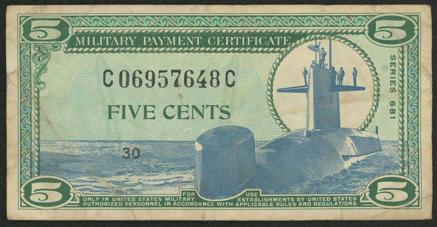 5¢ Five Cents Series 681 Military Payment Certificate Note (MPC)