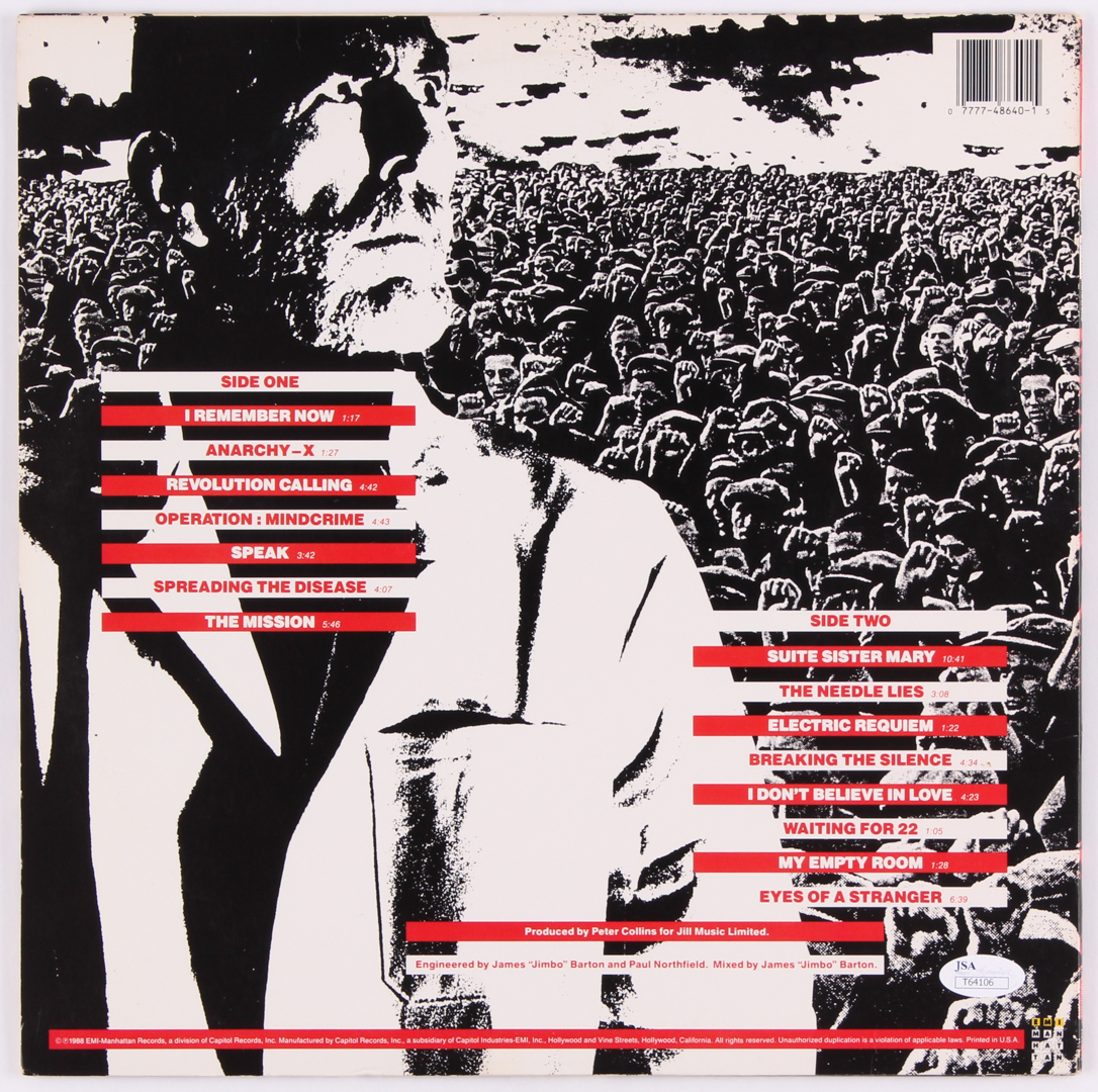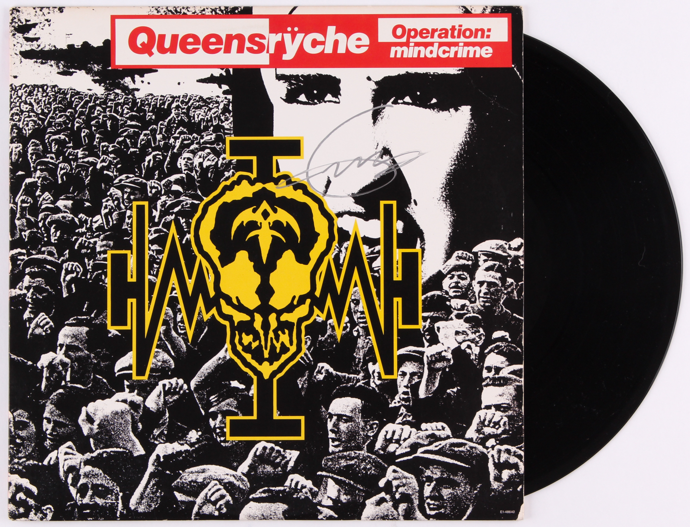 Queensryche Operation: Mindcrime vinyl record album has been hand-signed in silver paint pen by Geoff Tate. Please note, the vinyl record is included.