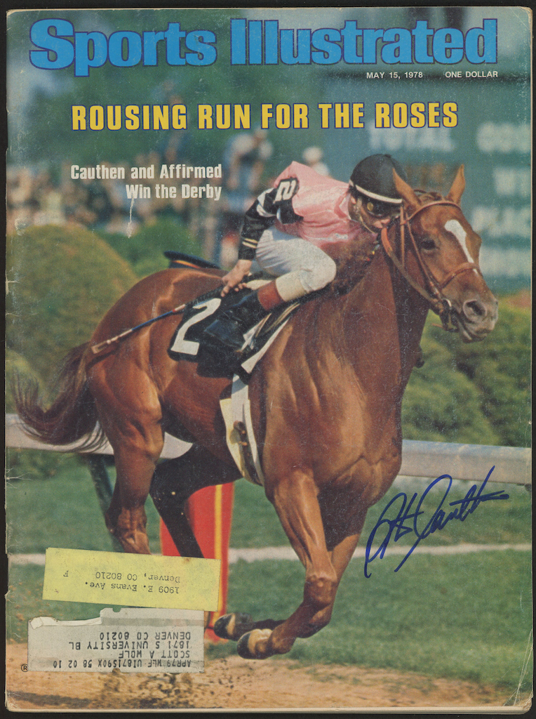 Sports Illustrated dated May 15, 1978 measures 8" x 10" in size and has been hand-signed in blue felt-tip pen by Steve Cauthen.