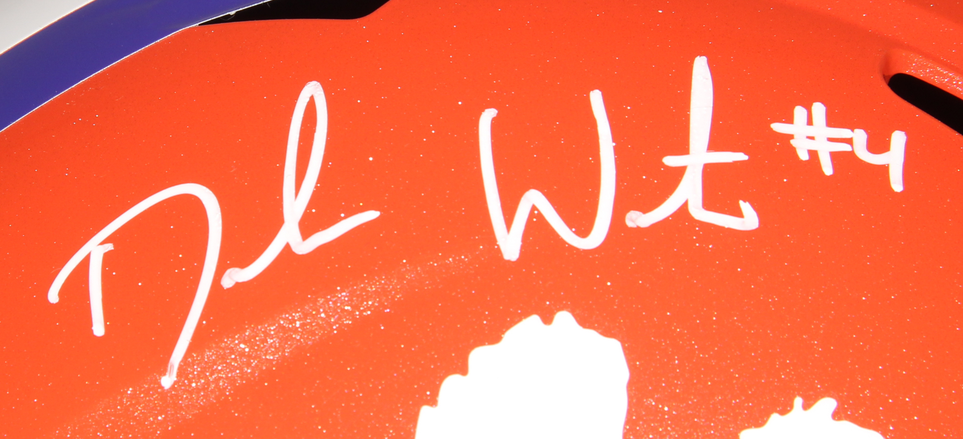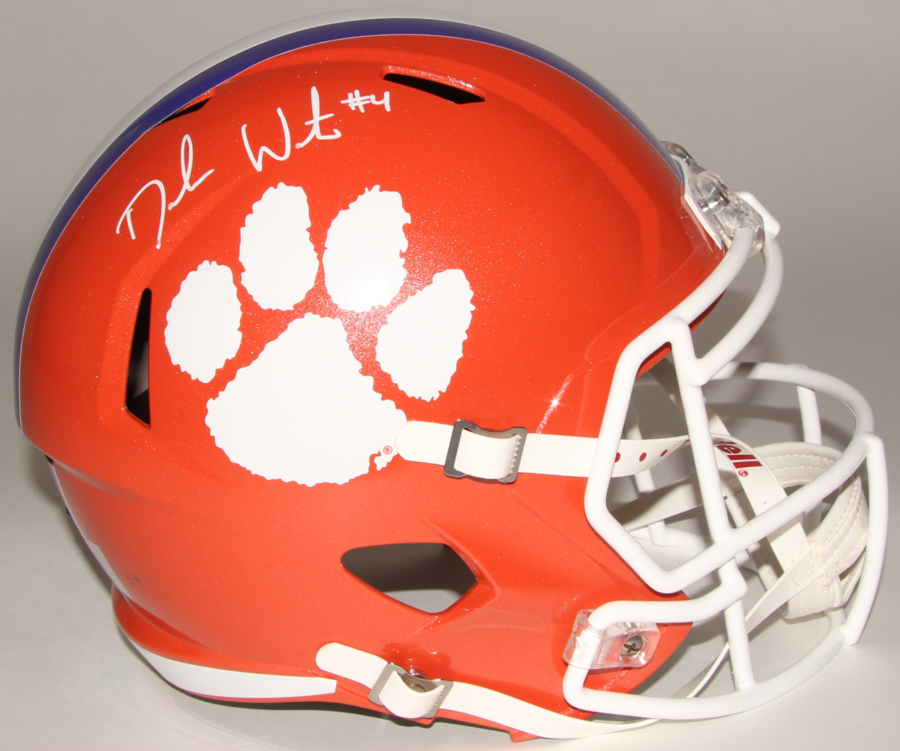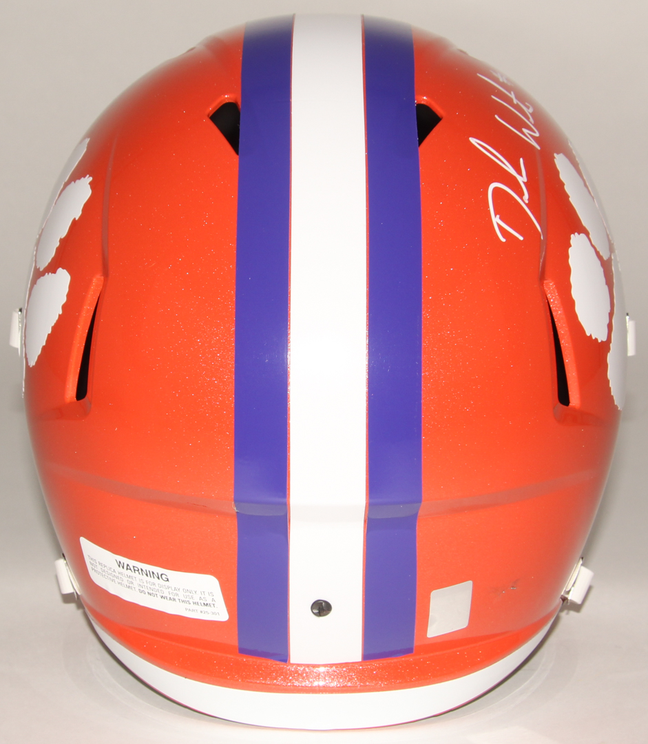 Riddell Clemson Tigers full-size replica Speed helmet. Hand-signed in white paint pen by Deshaun Watson (Texans).