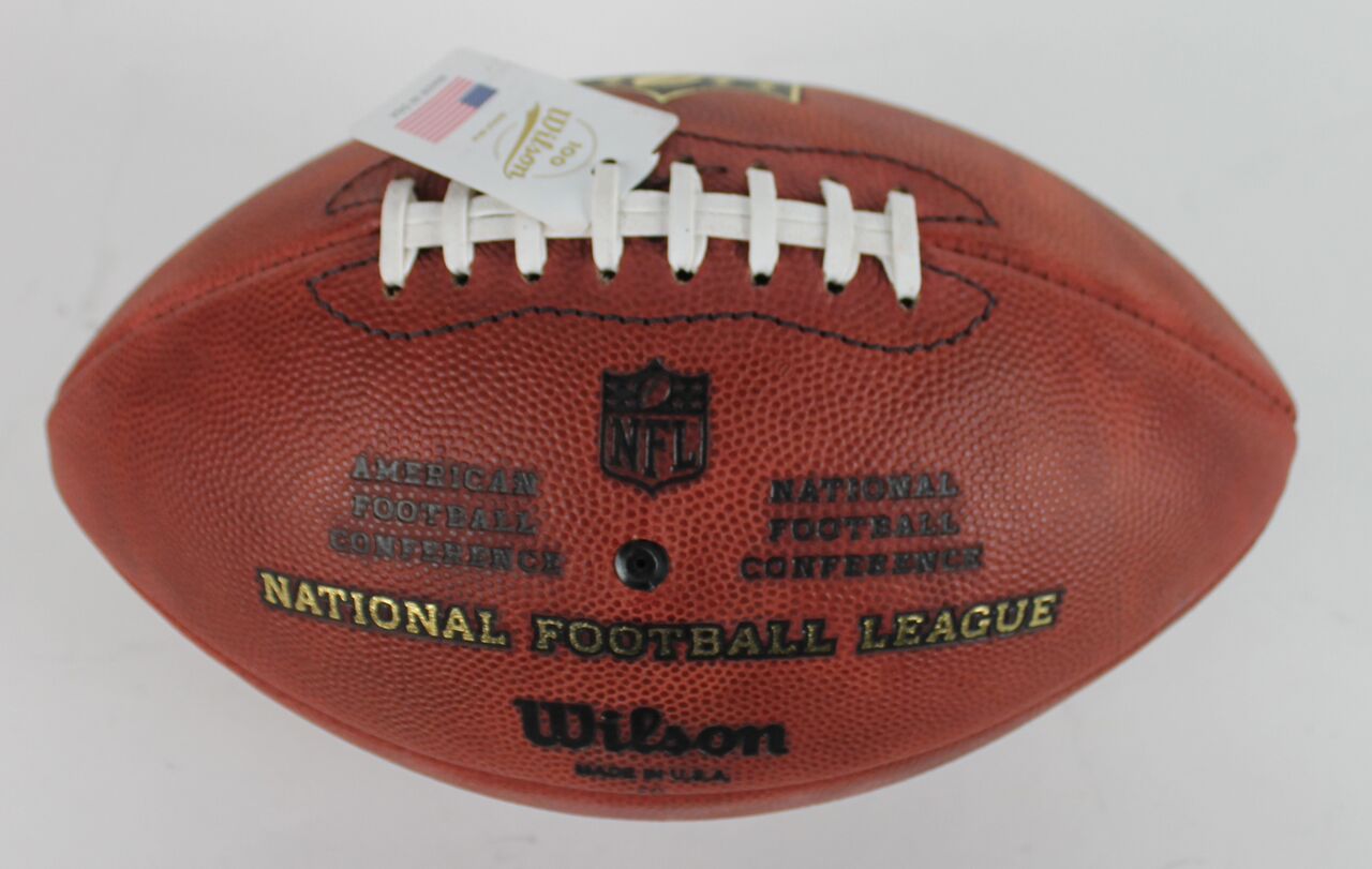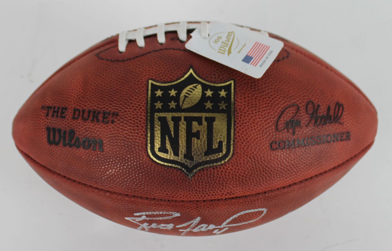Wilson "The Duke" Official NFL Game Football. Hand-signed and inscribed in silver paint pen by Brett Favre (Packers, HOF).