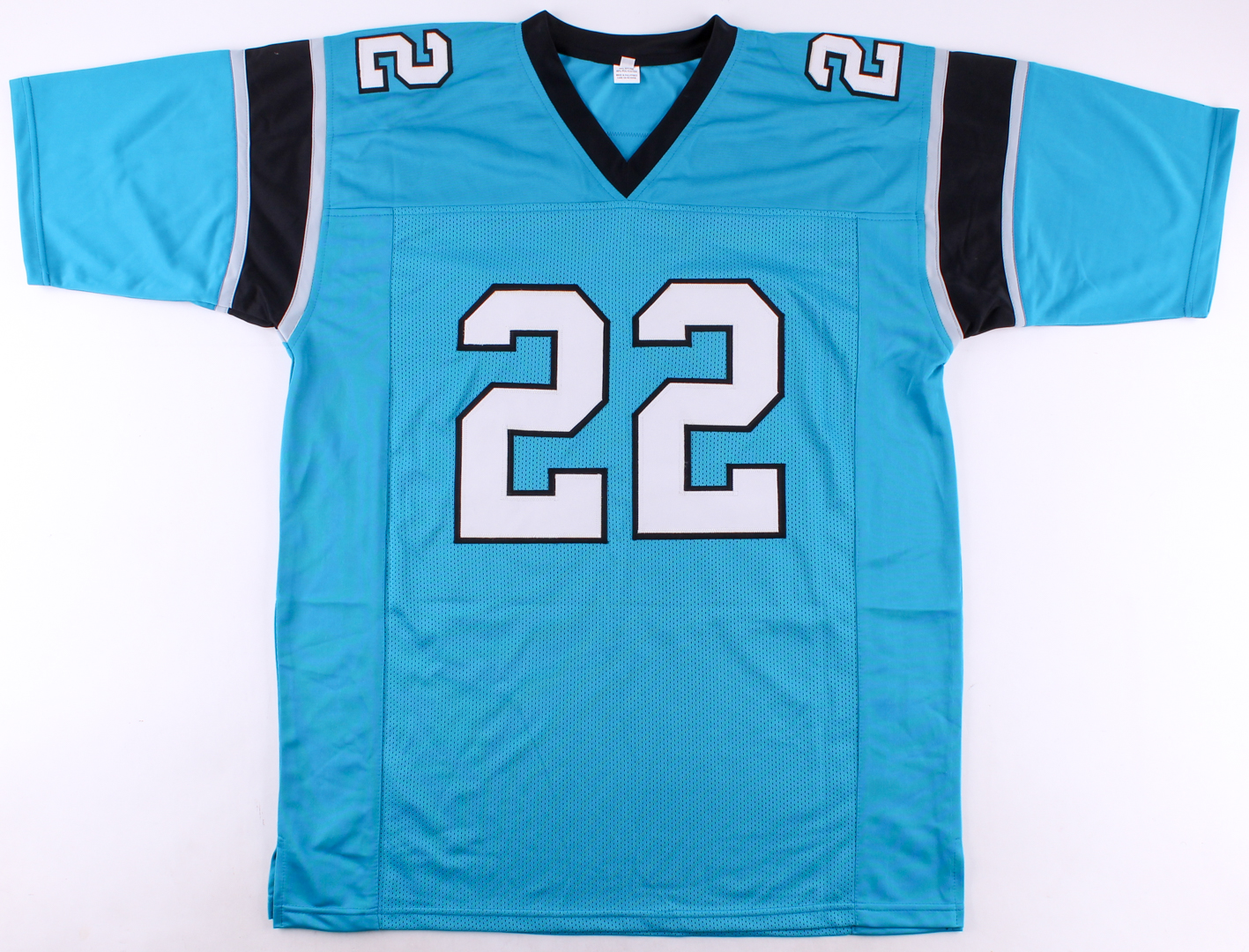 Custom on-field style jersey with everything sewn on, size XL. Jersey has been hand-signed in black felt-tip pen by Christian McCaffrey.