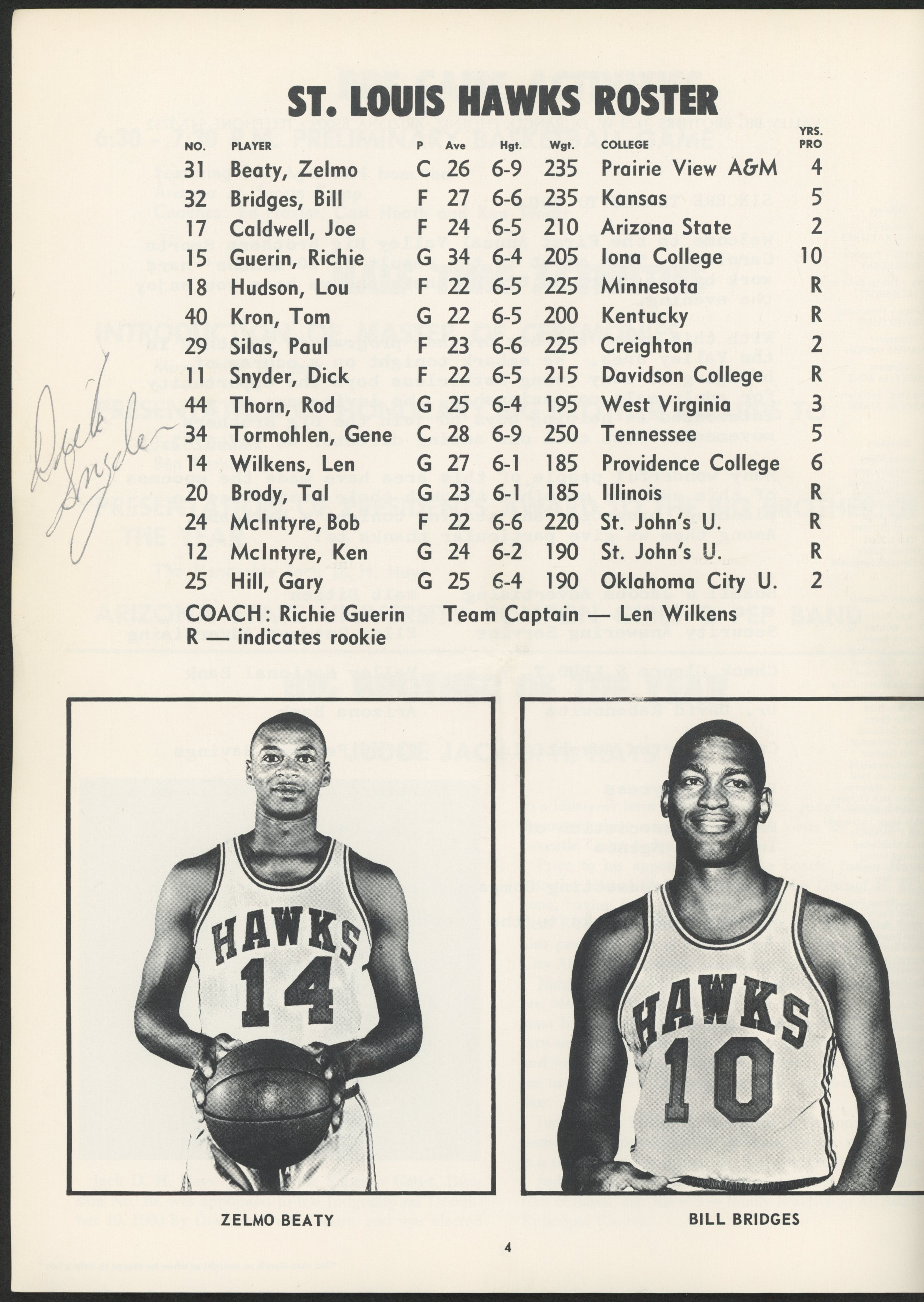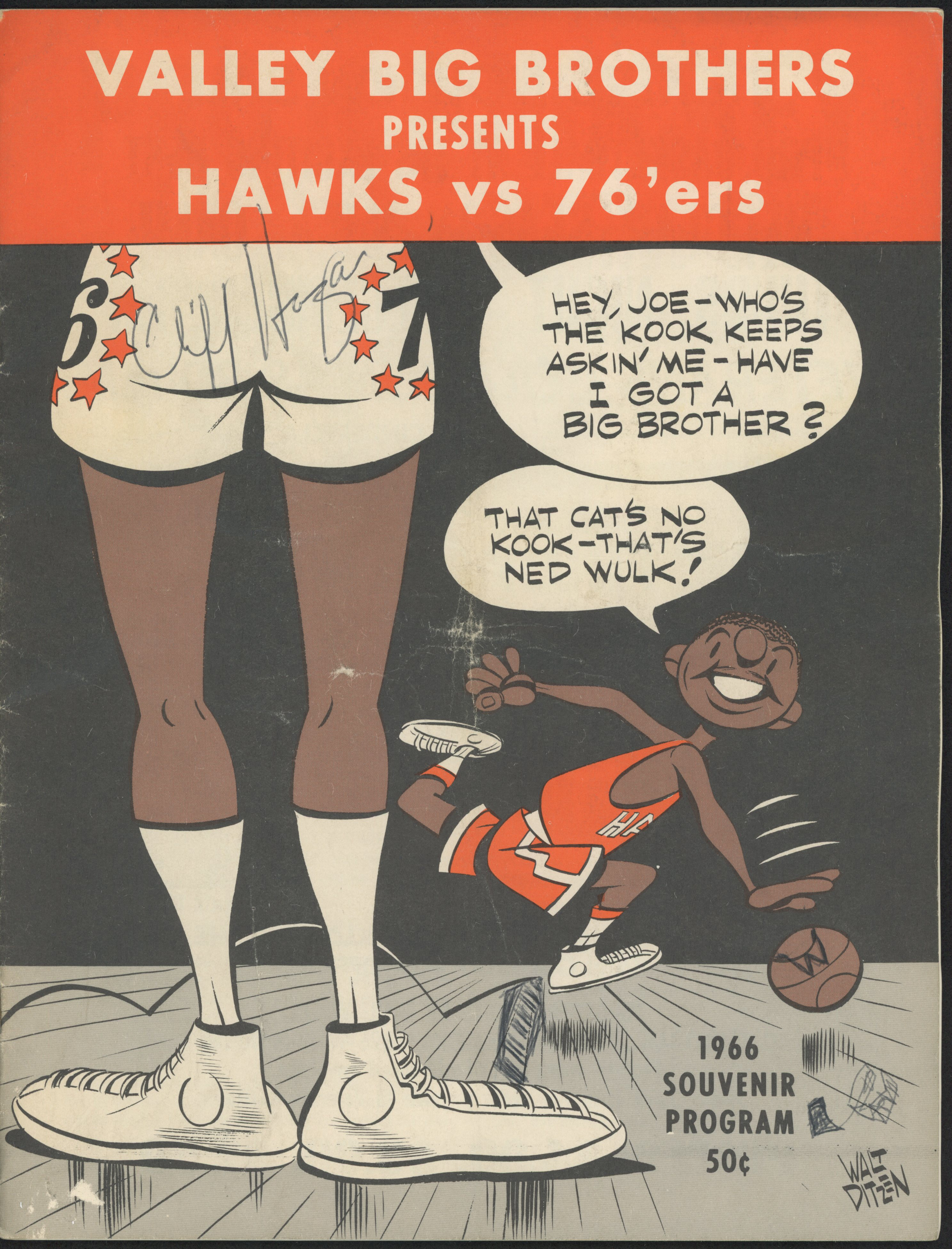 1966 Hawks V. 76ers Souvenir Program has been hand-signed by (9) with Wilt Chamberlain, Hal Greer, Wally Jones, Chet Walker, Joe Caldwell, Dick Snyder, Richie Guerin, Rod Thorn and (1) other.