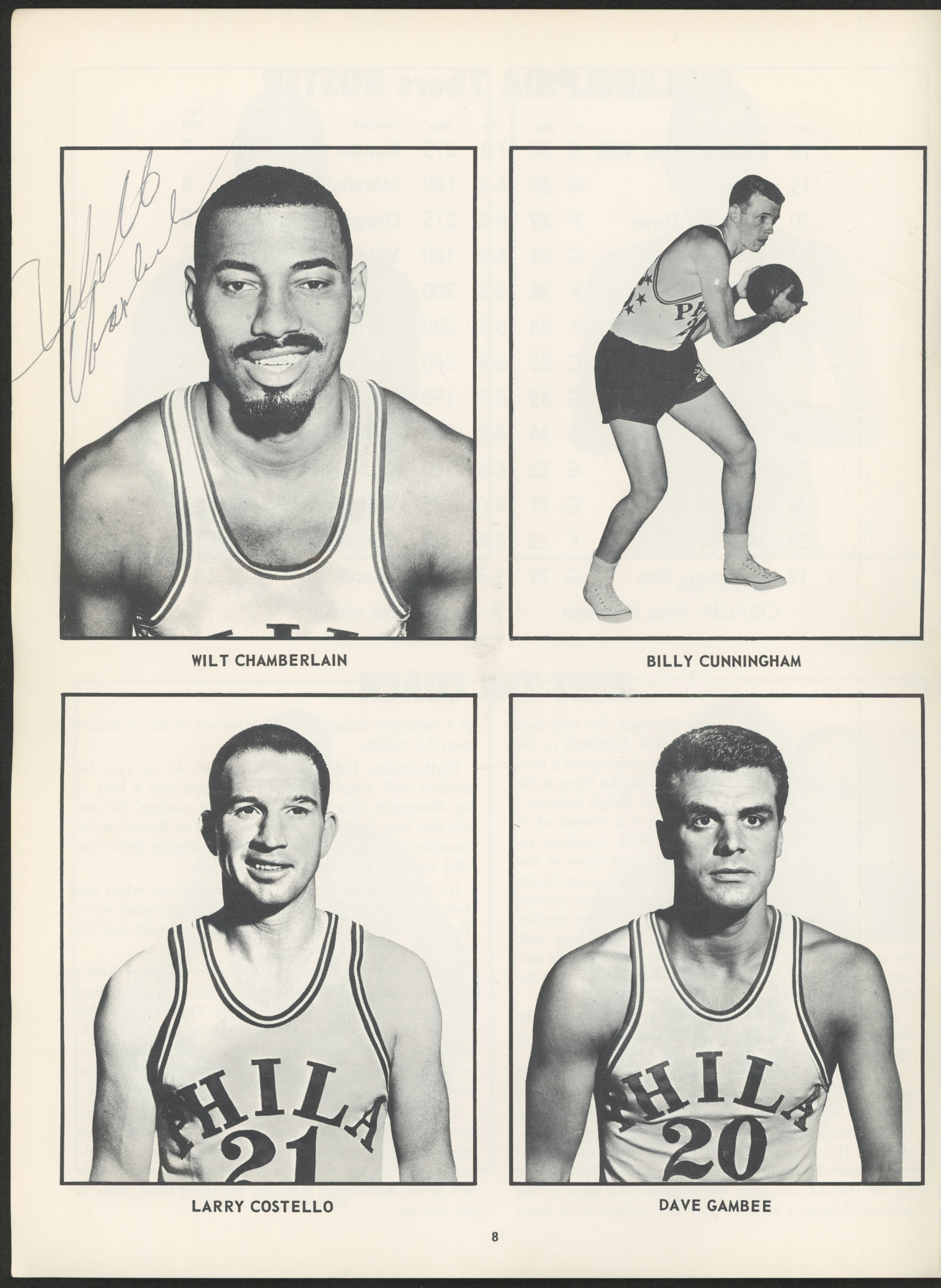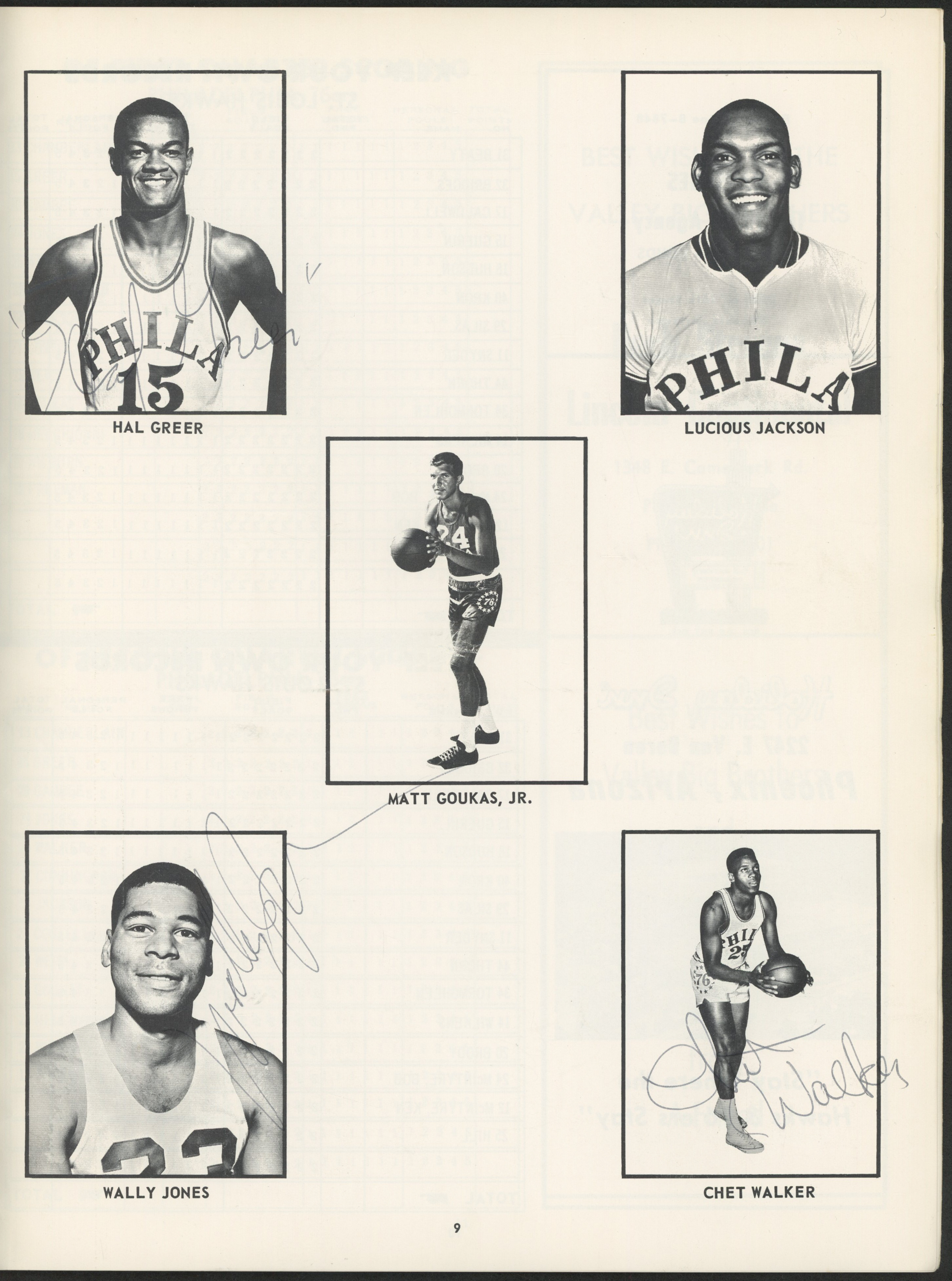 1966 Hawks V. 76ers Souvenir Program Signed by (9) with Wilt Chamberlain, Hal Greer, Wally Jones, Chet Walker, Joe Caldwell, Dick Snyder, Richie Guerin, Rod Thorn (JSA ALOA)