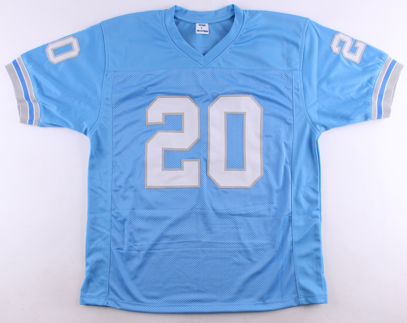 Sanders joined the Lions in 1989 and had an immediate impact, winning the NFL's Rookie of the Year award. Through ten seasons in Detroit, he averaged over 1,500 rushing yards per season and just under 100 rushing yards per game. In 1997, he became the third player to rush for over 2,000 yards in a season and was named the NFL Most Valuable Player. Still, seemingly in his prime, Sanders unexpectedly retired from football after the 1998 season, 1,457 yards short of breaking the NFL's all-time rushing record. His number 20 jersey was retired by the Lions, and he was inducted into the Pro Football Hall of Fame in 2004.