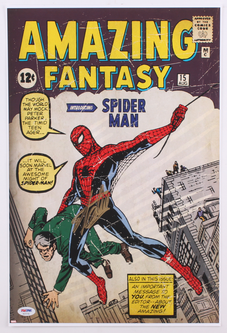 Stan Lee Signed "Amazing Fantasy Spider-Man" 12x18 Poster (PSA COA)