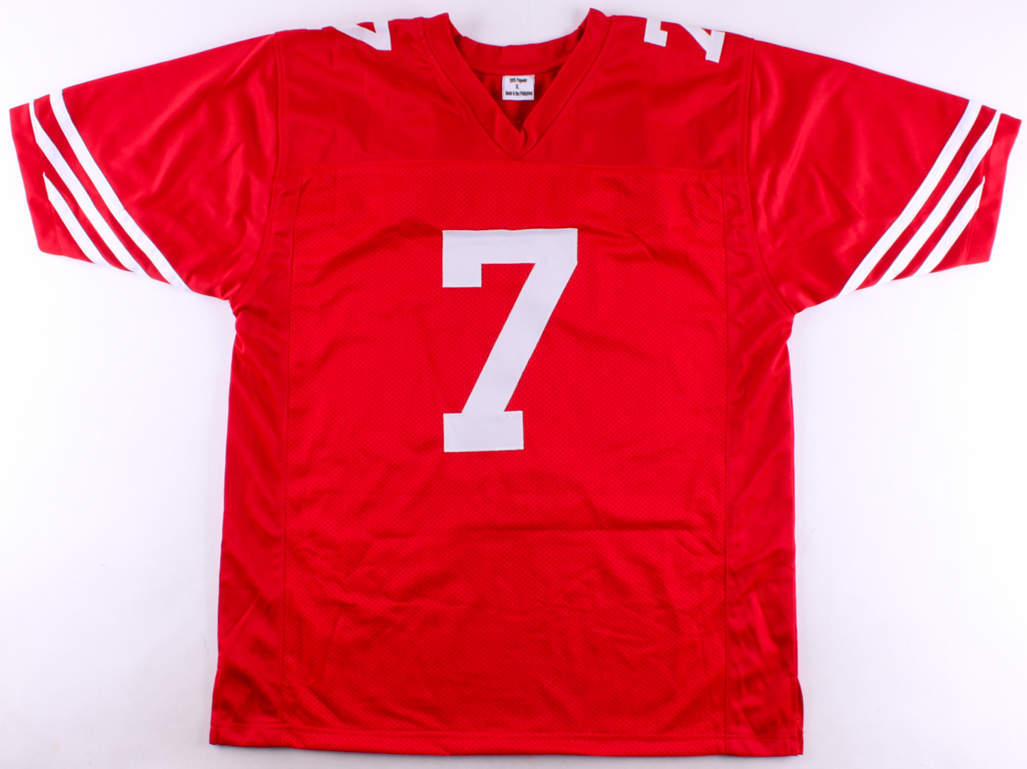 Custom on-field style jersey. Everything is sewn on, size XL. Hand-signed in black felt-tip pen by Colin Kaepernick.