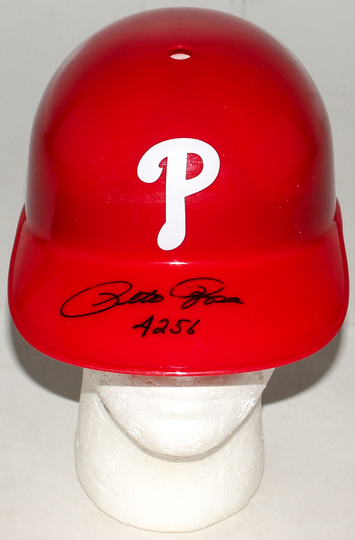 Pete Rose Signed Phillies Full-Size Batting Helmet Inscribed "4256" (JSA COA)