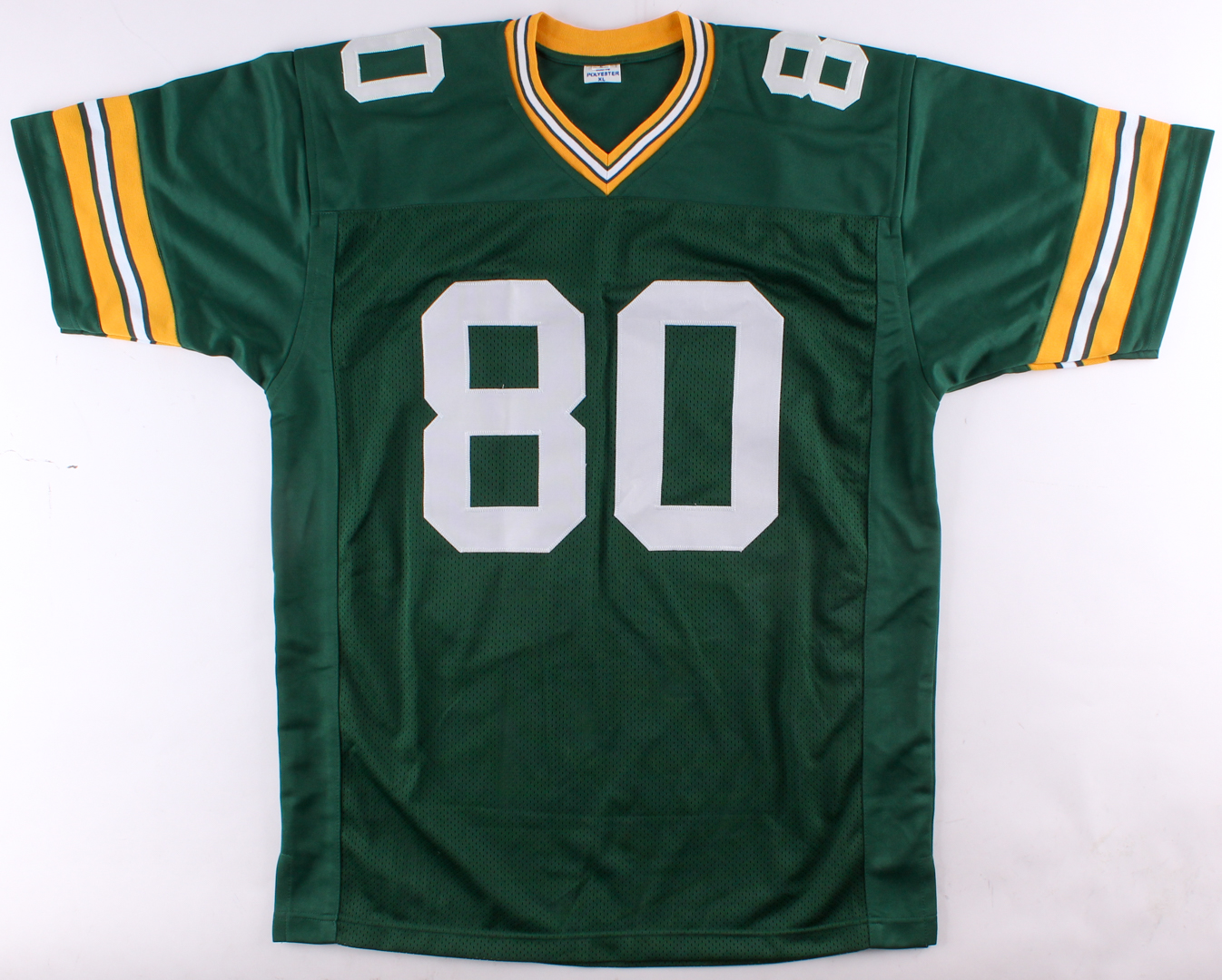 Custom on field style jersey with everything sewn on, size XL. Jersey has been hand-signed and inscribed in black felt-tip pen by Donald Driver.