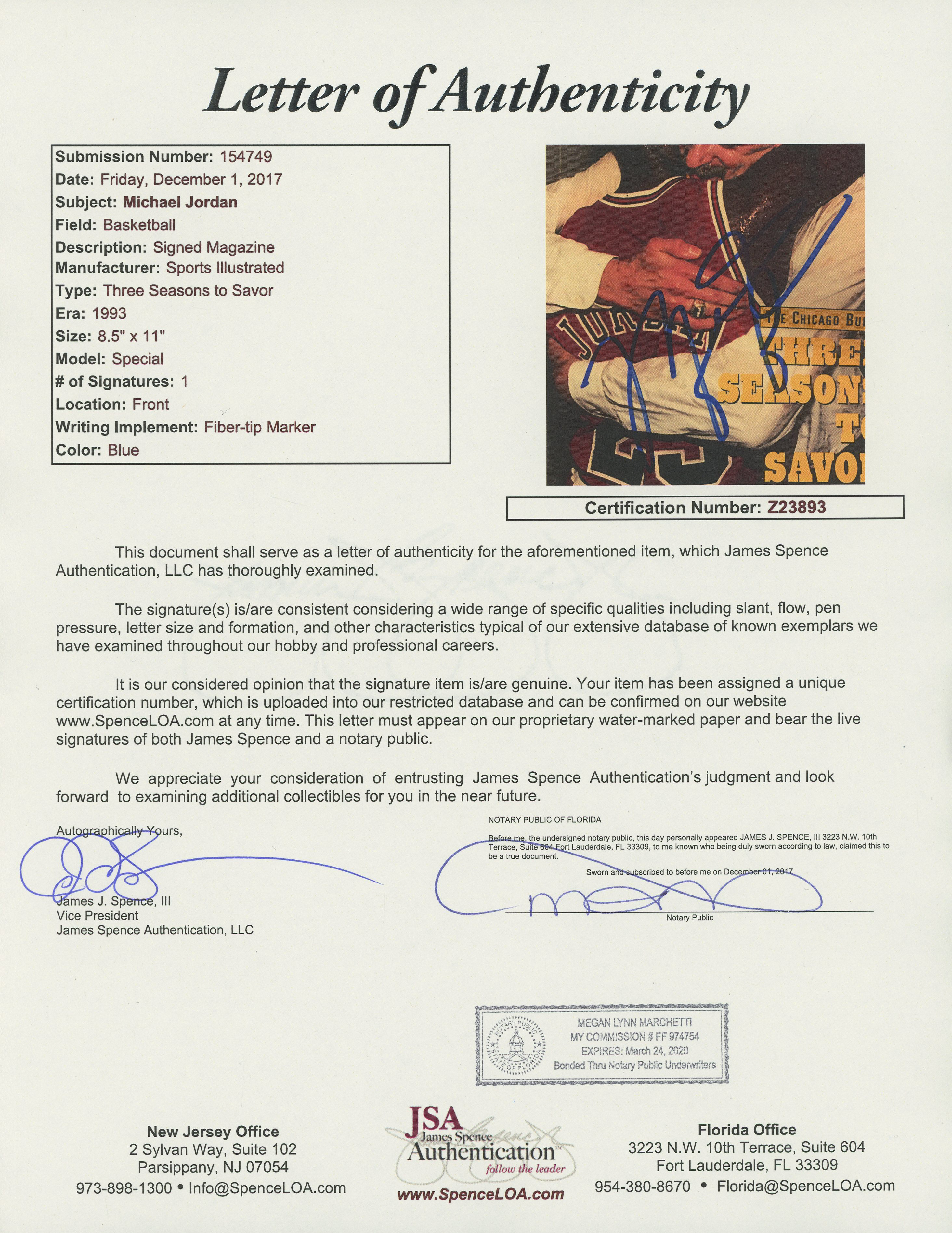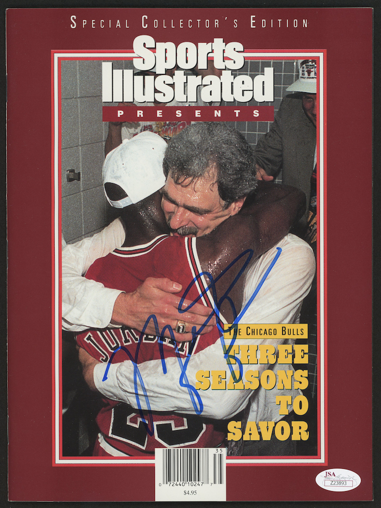 Sports Illustrated special edition issue. Hand-signed in blue felt tip pen by Michael Jordan (HOF).
