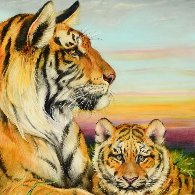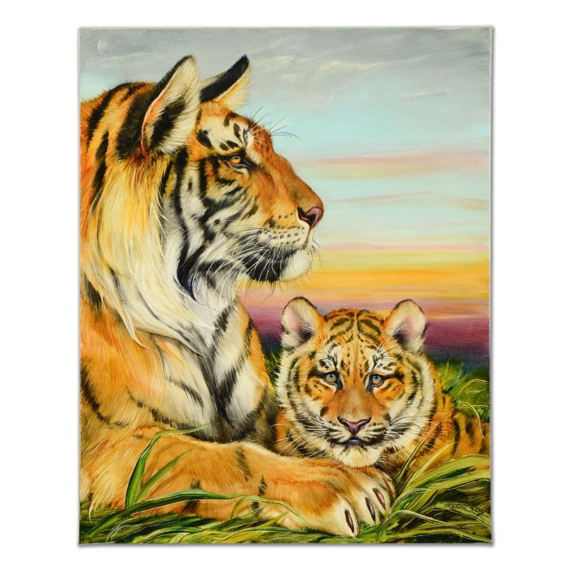 Martin Katon Signed "Tiger Mom" 24x30 Original Oil Painting on Canvas